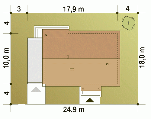 - Minimalne wymiary działki18 x 24.9m