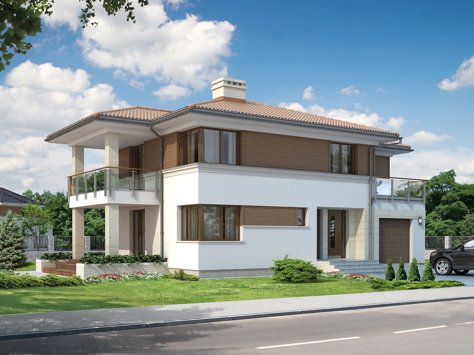 Jednorodzinny budynek mieszkalny, piętrowy, przeznaczony dla 4 - 5-osobowej rodziny. Nowoczesna, ciekawa bryła. Na parterze przewidziano cześć dzienną oraz część gospodarczą z garażem. Na piętrze cztery sypialnie oraz łazienka.Konstrukcja