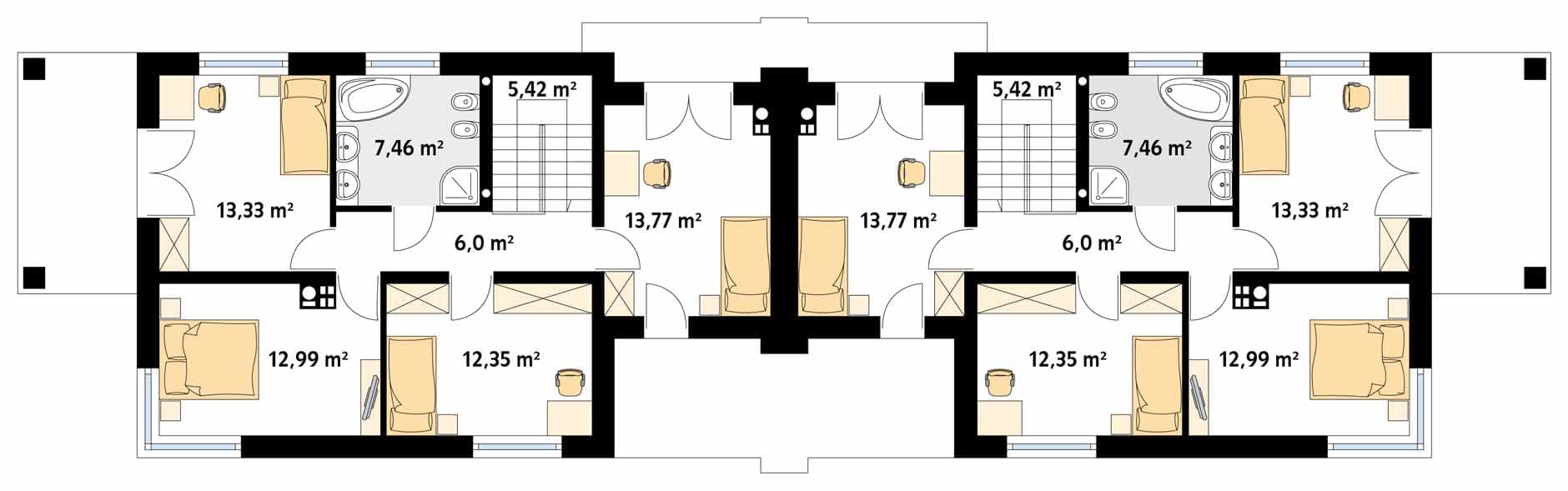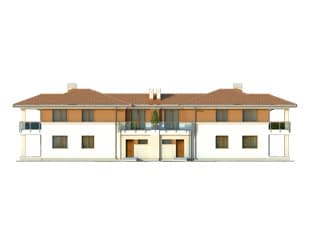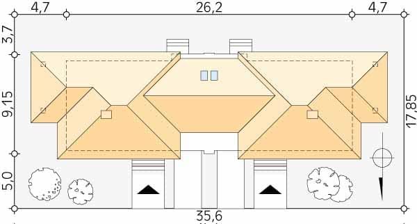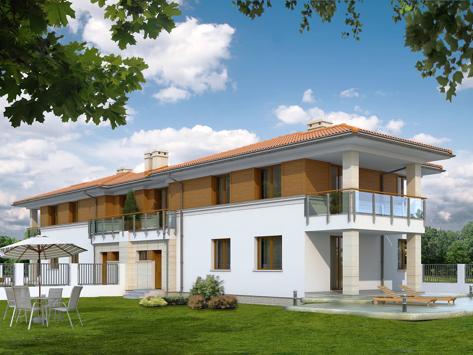 Dom w zabudowie bliźniaczej, piętrowy, dostosowany do potrzeb 4 – 5-osobowej rodziny. Ciekawa, nowoczesna architektura. Prosta, nieskomplikowana bryła. Wyraźny podział na część dzienną, nocną i gospodarczą.Konstrukcja