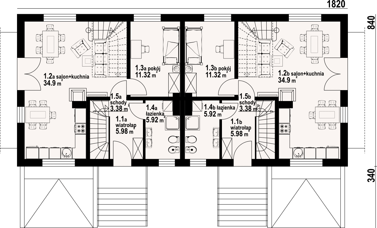 - 1.2 - kuchnia, salon34.9 m²