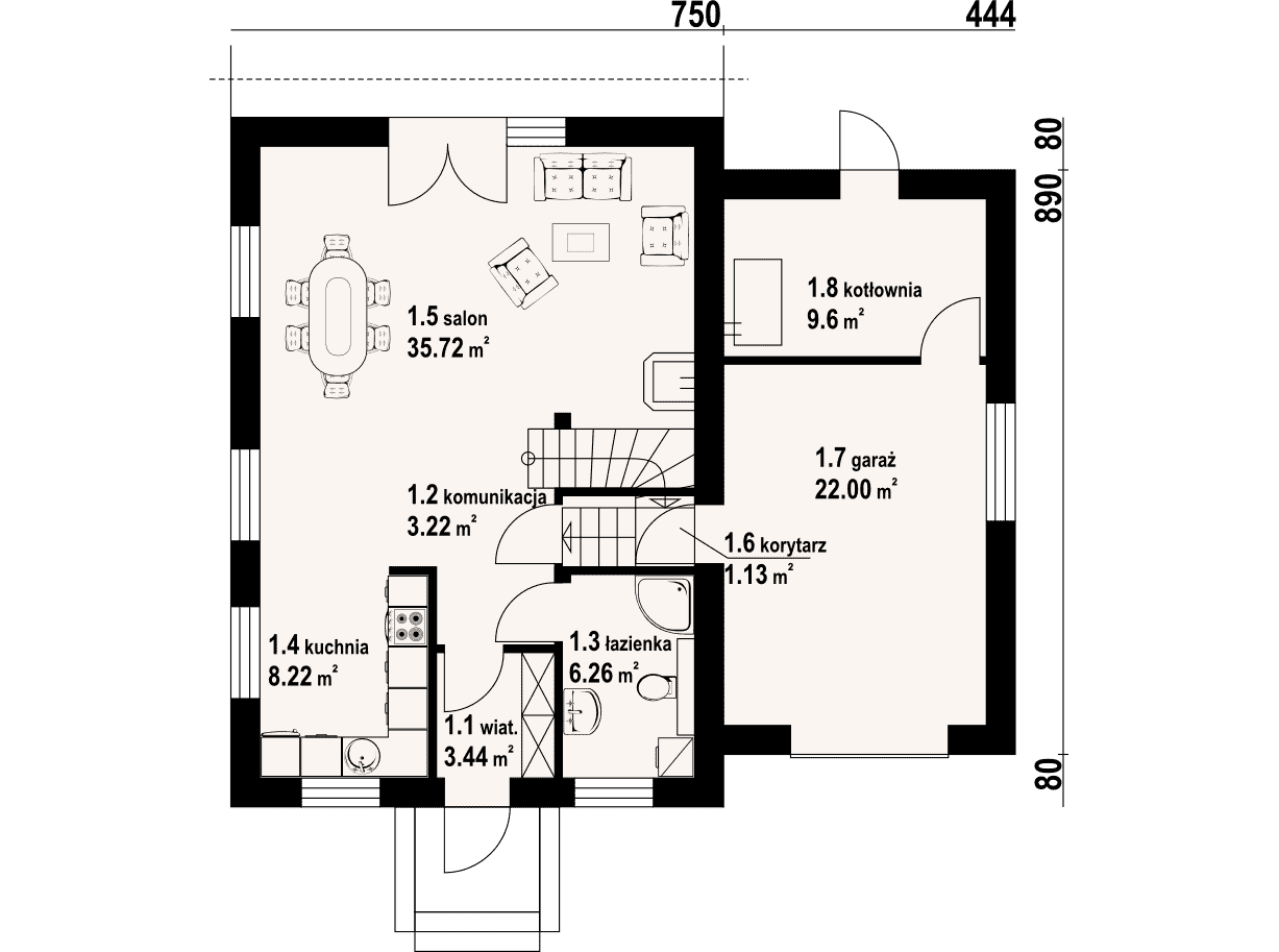 - 1.5 - salon35.72 m²