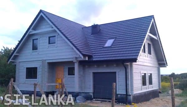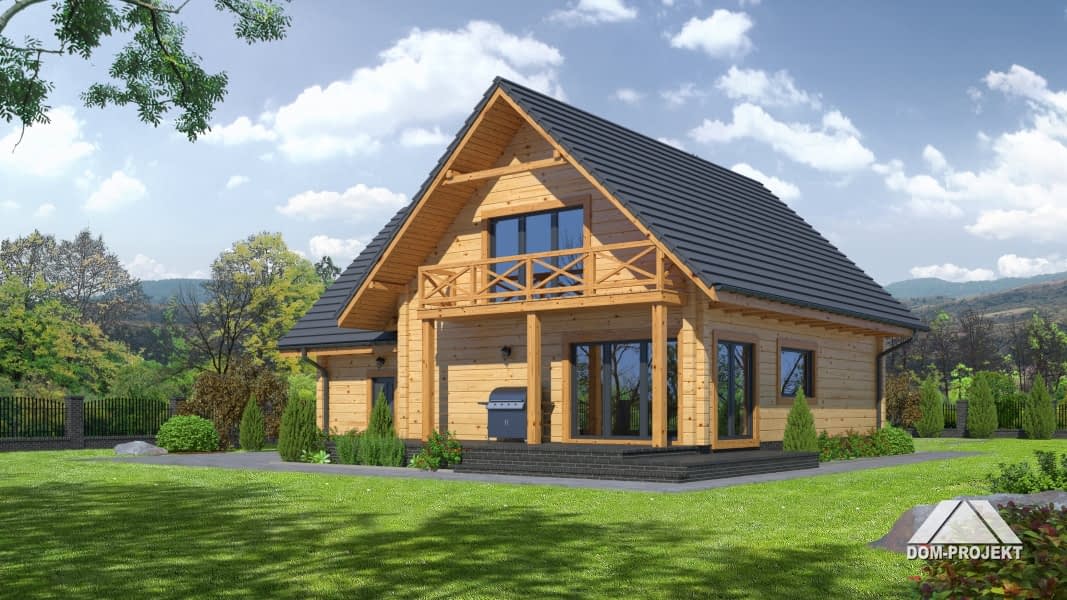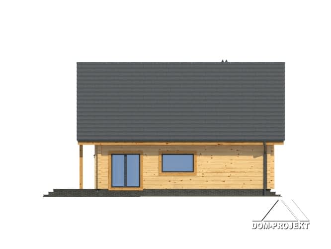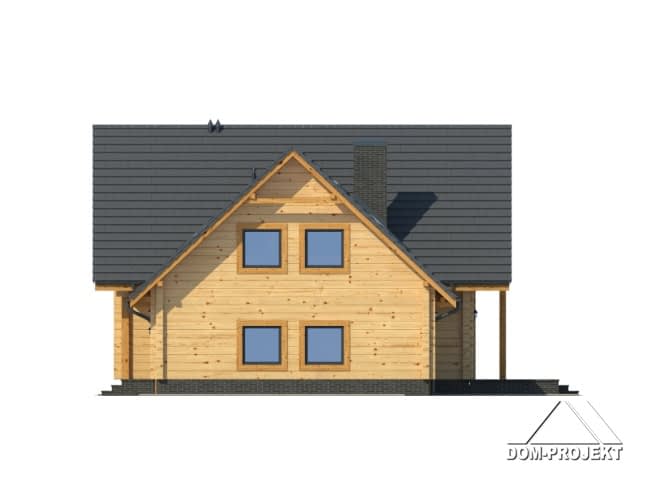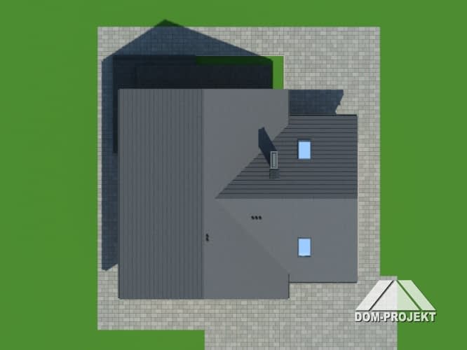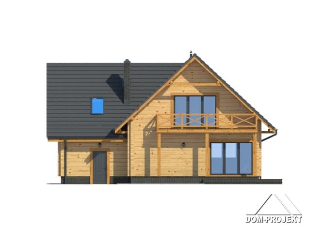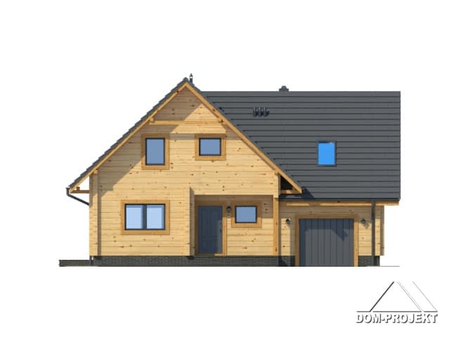 Funkcjonalny dom z użytkowym poddaszem. Na parterze duży salon z kominkiem, połączony z kuchnią. Schody z salonu prowadzą na poddasze, gdzie znajdują się trzy sypialnie, pokój rekreacyjny i łazienka. Dobudowana cześć gospodarcza mieści garaż i kotłownię.Rzuty