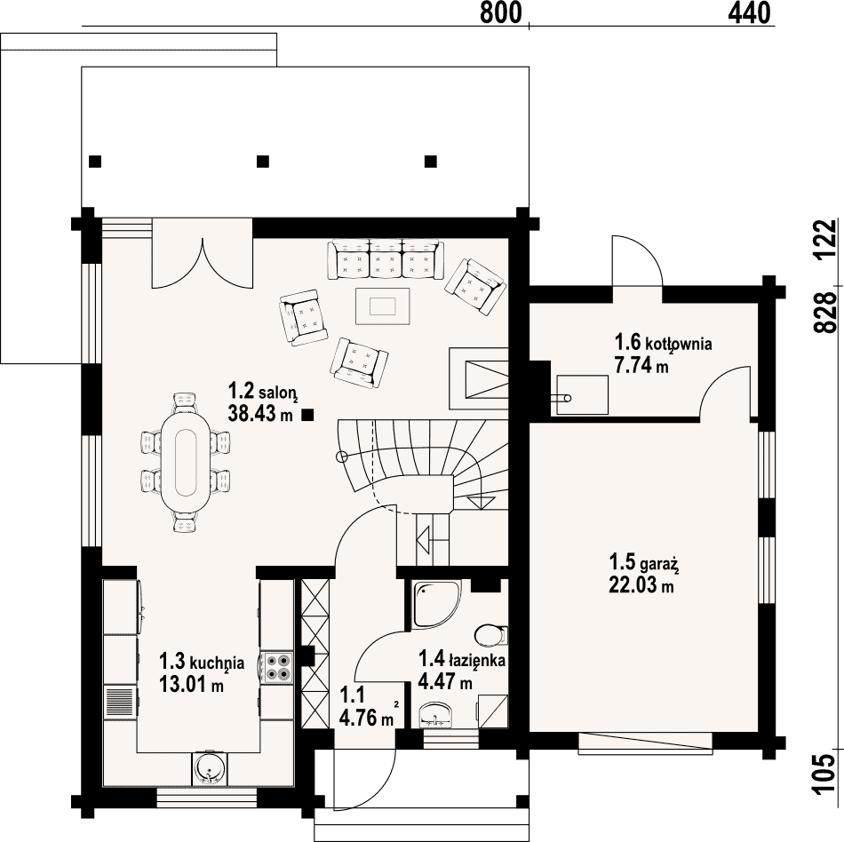 - 1.5 - garaż22.03 m²