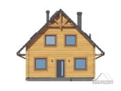 Dom z bali. Na parterze salon z aneksem kuchennym, kominkiem oraz wyjściem na taras. Pokój do pracy, komunikacja, wc, wiatrołap, kotłownia. Na poddaszu trzy pokoje, łazienka, korytarz oraz balkon dostępny z dwóch pokoi. Zwarta bryła budynku oraz dach dwuspadowy sprzyjają szybkiej i taniej budowie oraz niskim kosztom eksploatacji.Rzuty
