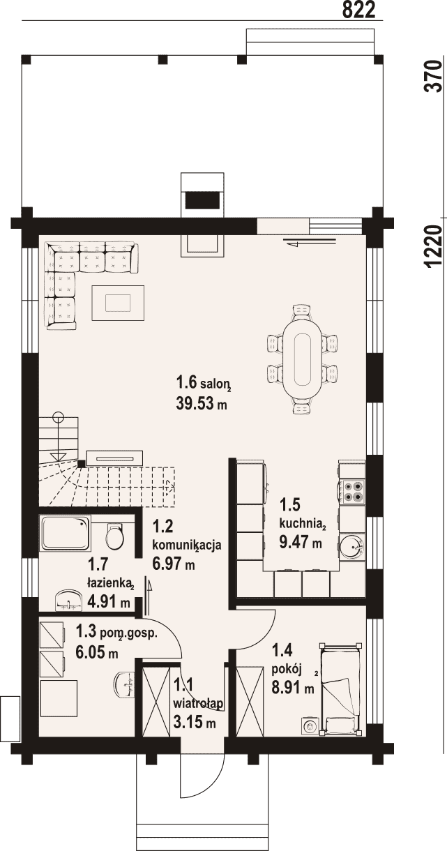 - 1.3 - pom.gosp.6.05 m²