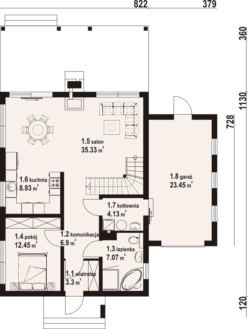 - 1.5 - salon35.33 m²