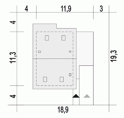 - Minimalne wymiary działki19.3 x 18.9m