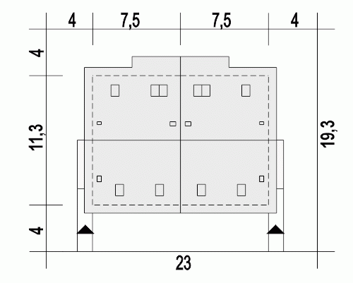 - Minimalne wymiary działki19.3 x 23m