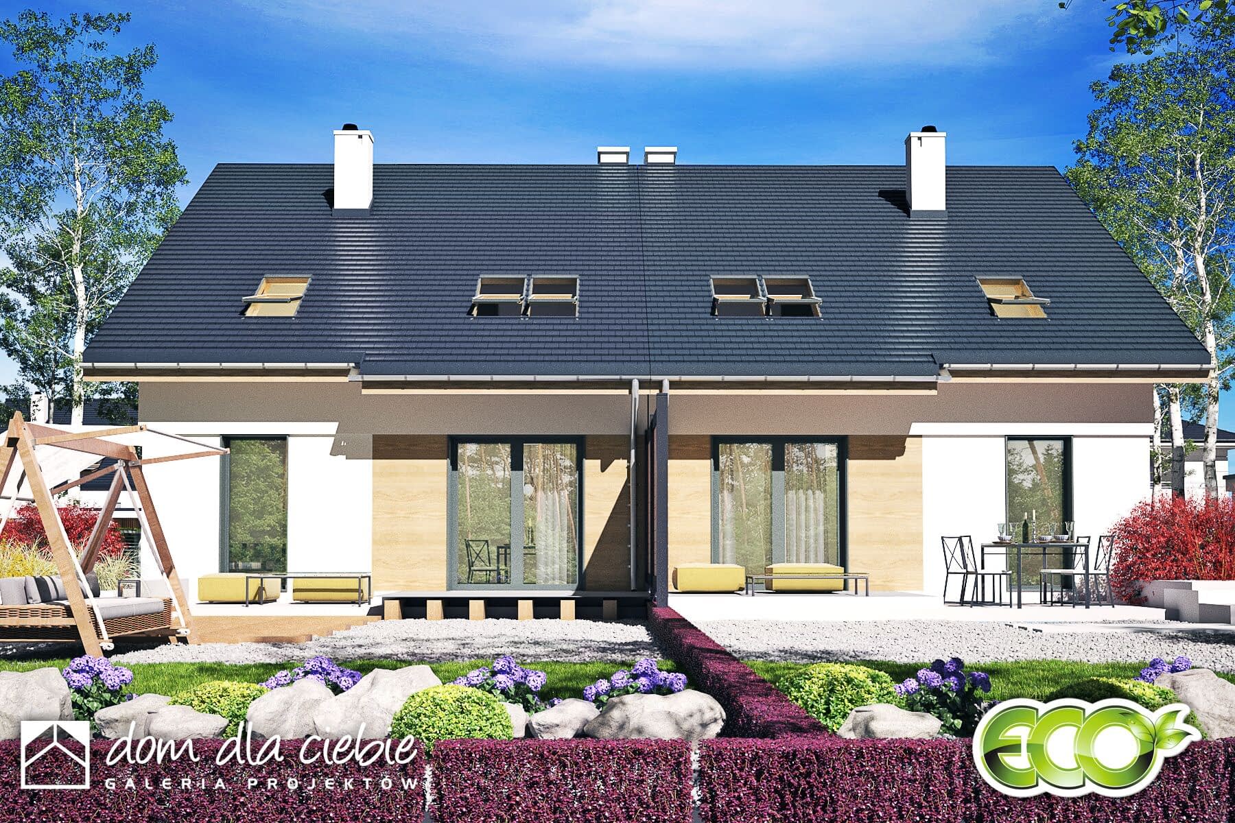 (Uwaga: projekty typu bliźniak oferujemy jako domy dwulokalowe, projekt można zamówić również w zabudowie bliźniaczej)Opis odnosi się do pojedynczego segmentu. Projekt domu Głuszec III jest przykładem klasycznego domu jednorodzinnego z poddaszem przeznaczonym na cele mieszkalne. Ten dwukondygnacyjny i prosty konstrukcyjnie dom jest dobrą alternatywą na wąskie działki lub do zabudowy bliźniaczej. Do budynku prowadzi zadaszone wejście usytuowane z przodu budynku. Na parterze zaproponowano strefę wspólną. Z salonu z jadalnią i kuchnią można wyjść na taras. Pod schodami znajdziemy spiżarnię. Obok schodów zaprojektowano niewielkie WC. Dużą kotłownię jest dostępna z wiatrołapu podobnie jak i garaż.Na piętrze w projekcie zaproponowano trzy sypialnię, łazienkę i pralnię. Jedna z sypialni to duży a przestrzeń typu master bedroom.Głuszec III to dom ekonomiczny w budowie i eksploatacji. Ze względów ekonomicznych zrezygnowano z balkonów i tarasów. Zastosowane portfenetry i dodatkowo okna połaciowe sprawią, że każde pomieszczenie na poddaszu będzie doskonale doświetlone. Elewację domu charakteryzuje delikatny detal i naturalna kolorystyka.