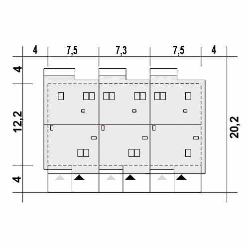 - Minimalne wymiary działki20.2 x 7.3m