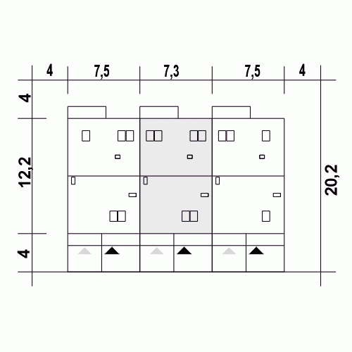 - Minimalne wymiary działki20.2 x 7.3m