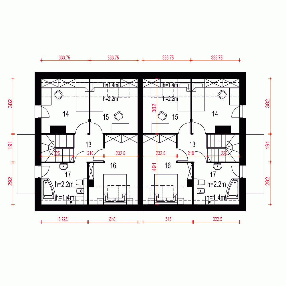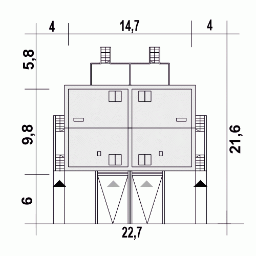 - Minimalne wymiary działki21.6 x 22.7m