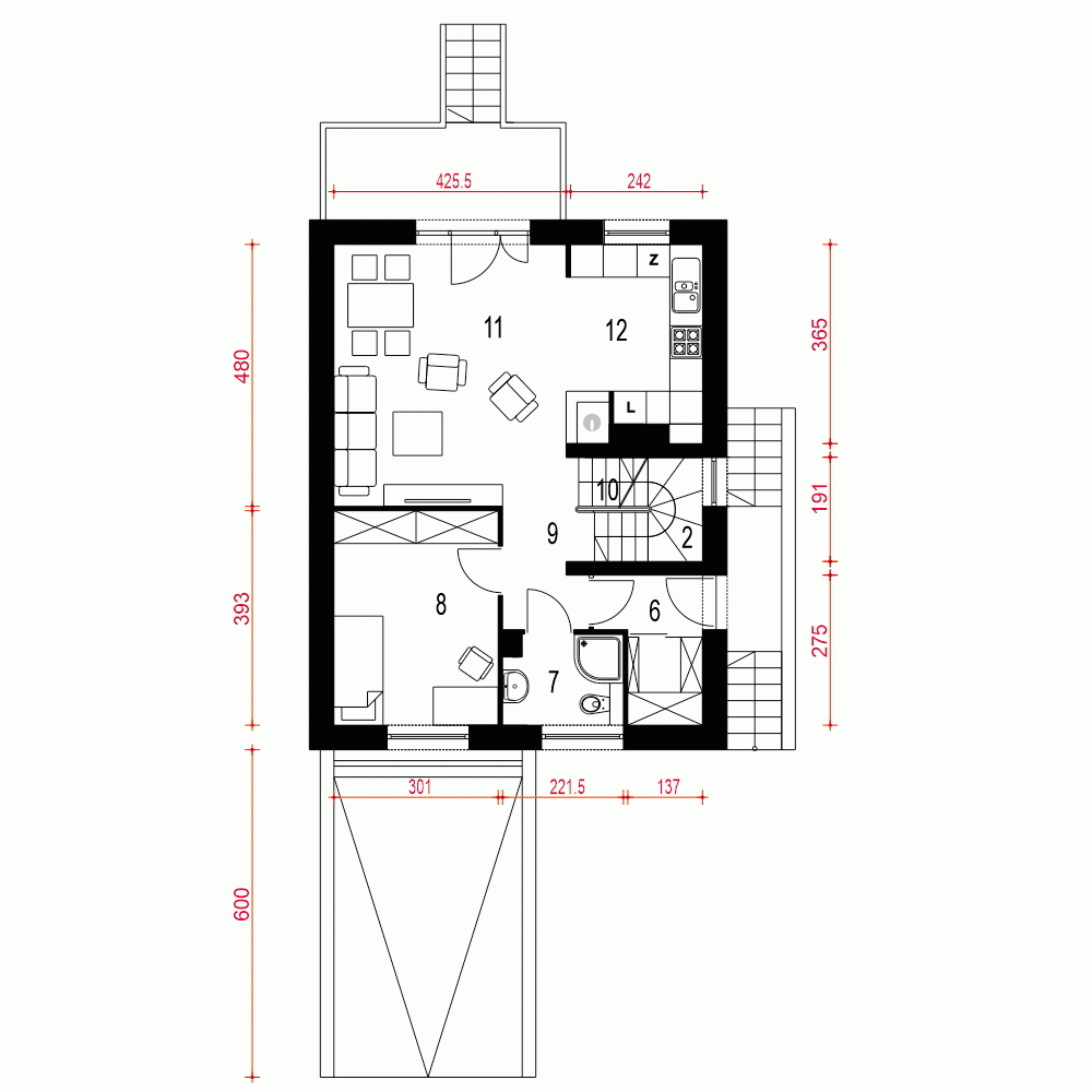Projekt w fazie koncepcji dostępny z wydłużonym terminem realizacji. Przy zamówieniu ustalamy termin i pobieramy zadatek 50% podstawowej ceny projektu (jako koszty usługi przygotowania dokumentacji do standardu projektu gotowego, w przypadku rezygnacji z usługi, zadatek nie podlega zwrotowi).