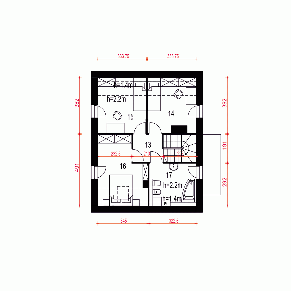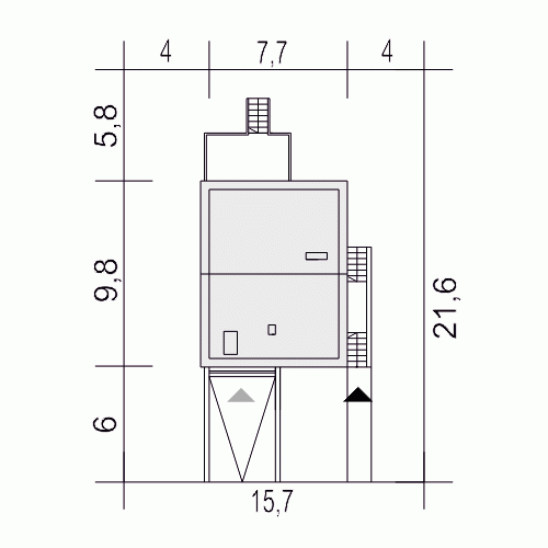 - Minimalne wymiary działki21.6 x 15.7m