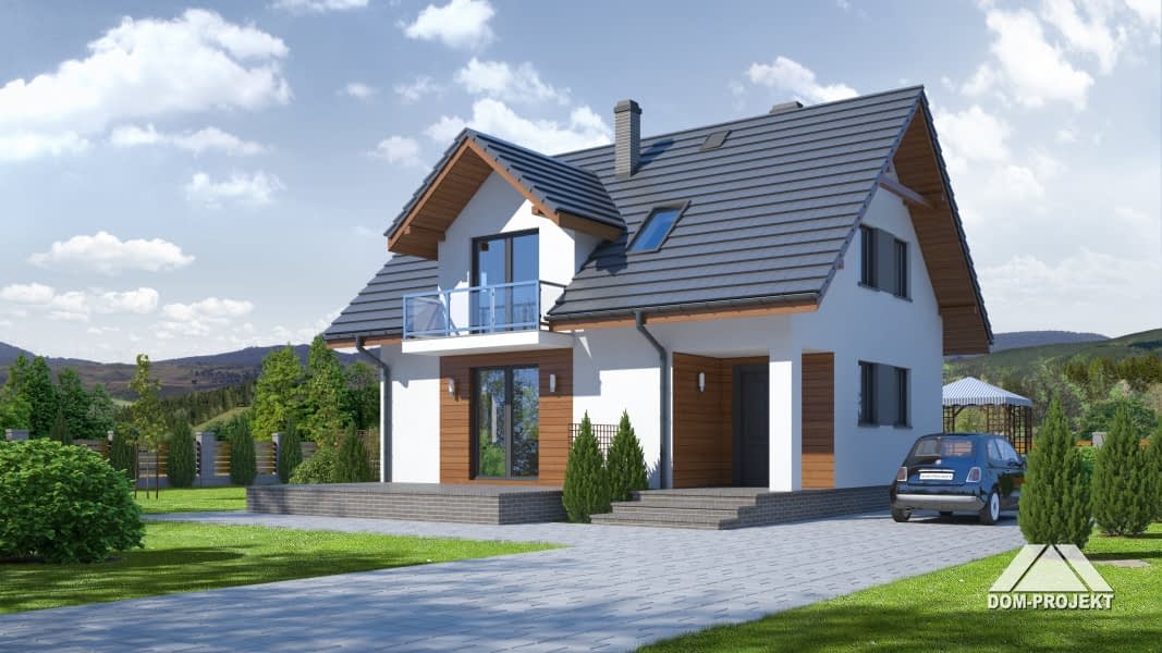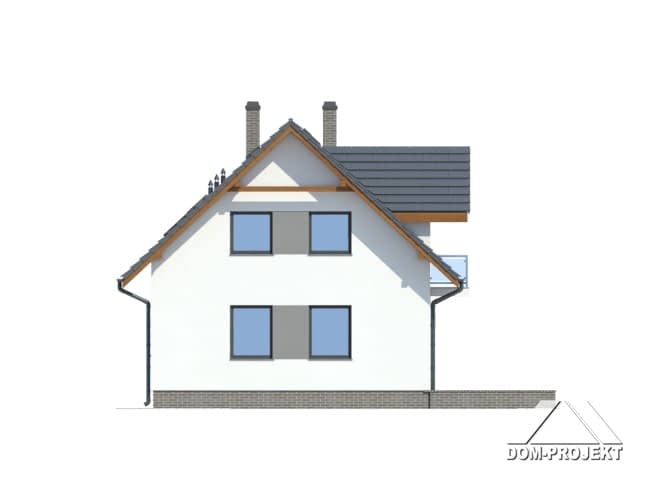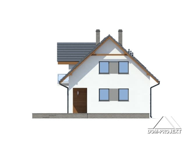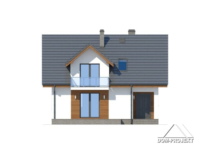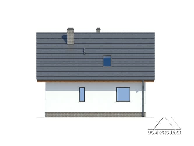 Prosty w formie, łatwy w budowie i tani w użytkowaniu dom idealnie nadający się na działki z wejściem od strony południowej. Strefę dzienną na parterze tworzy otwarta kuchnia oraz pokój dzienny z kominkiem. Na poddaszu trzy wygodne sypialnie i łazienka.Rzuty