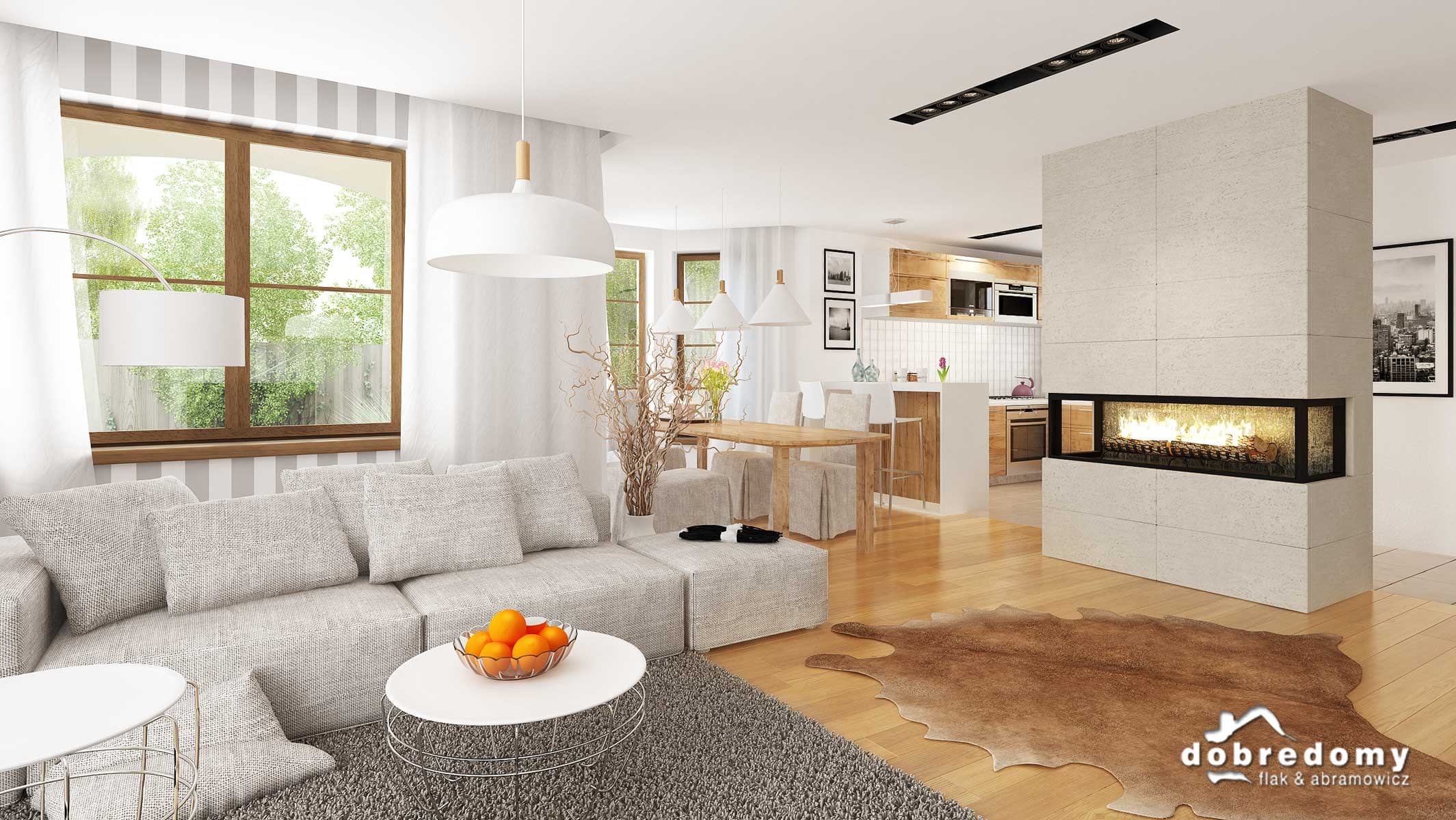 Elewacje pokryte tynkiem strukturalnym w systemie ociepleń Termo Organika. W projekcie zastosowano okna dachowe marki FAKRO. Pokrycie dachu - dachówka ceramiczna lub cementowa CREATON.