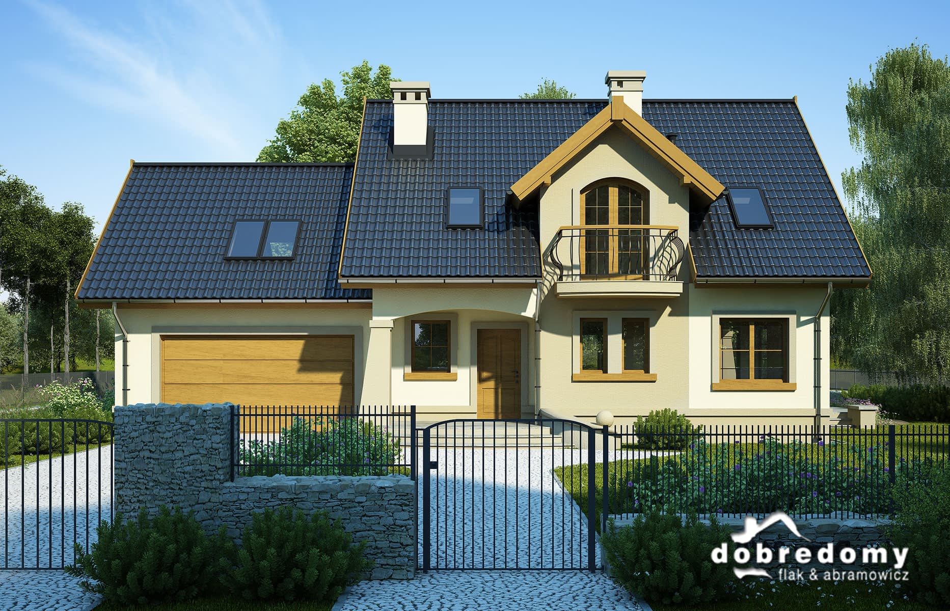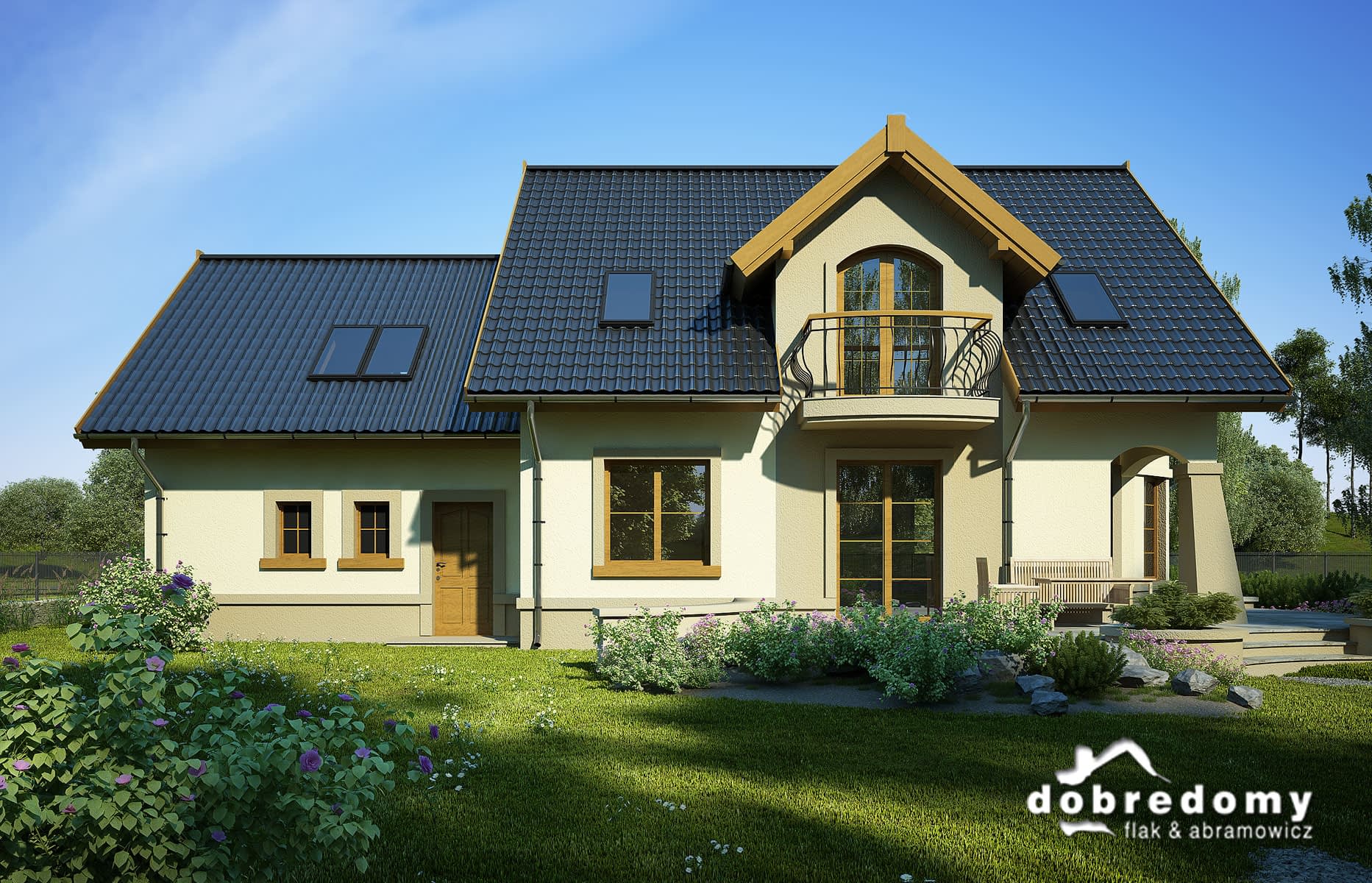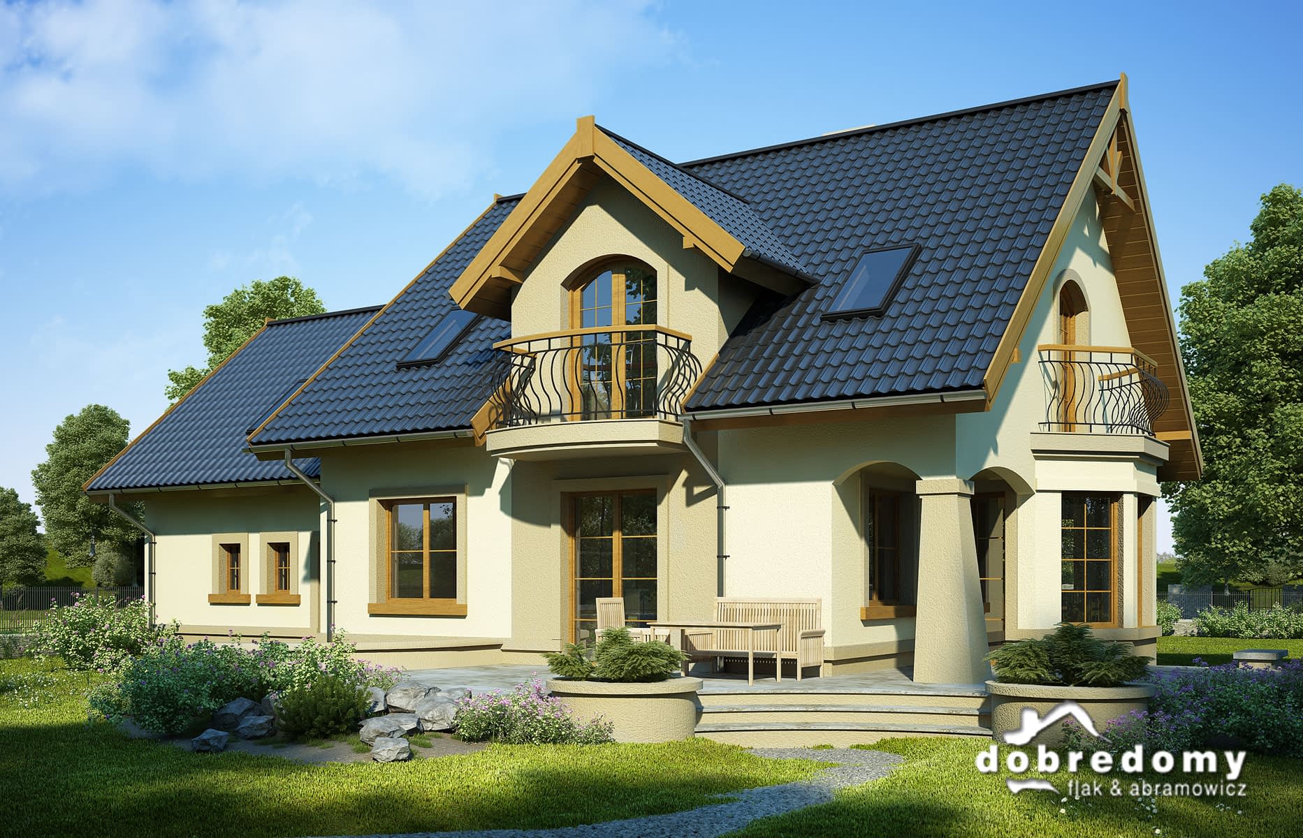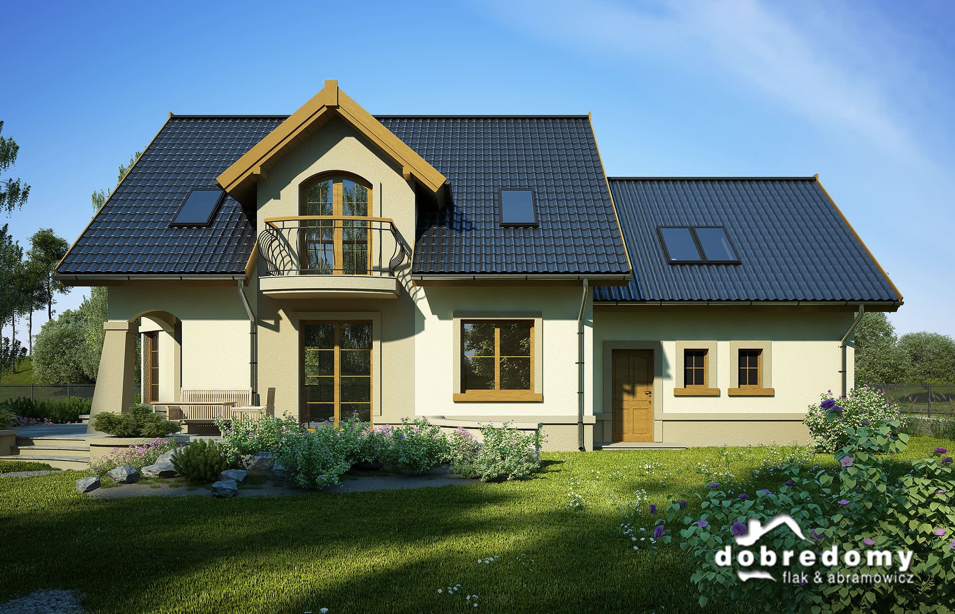 Elewacje pokryte tynkiem strukturalnym w systemie ociepleń Termo Organika. W projekcie zastosowano okna dachowe marki FAKRO. Pokrycie dachu - dachówka ceramiczna lub cementowa CREATON.