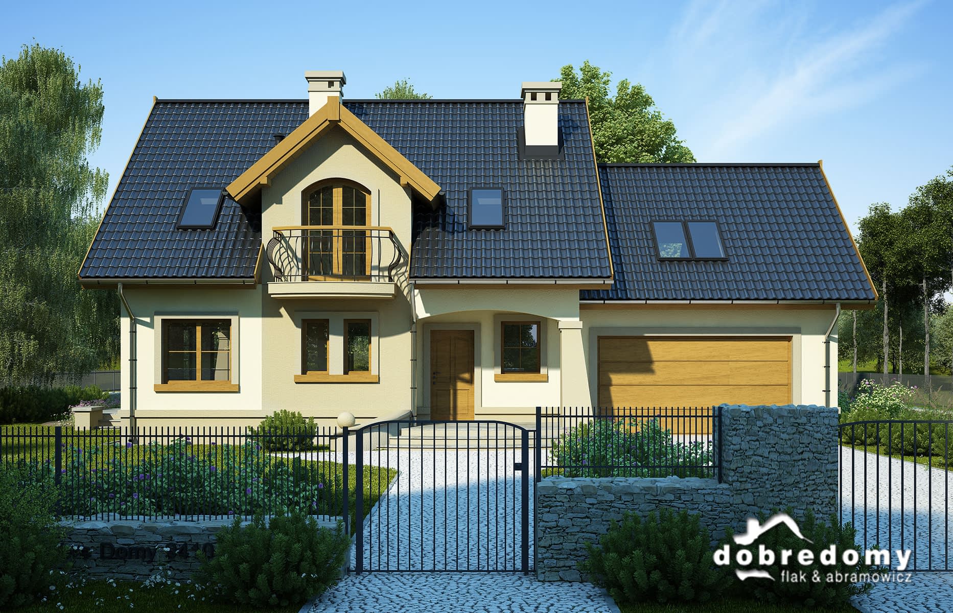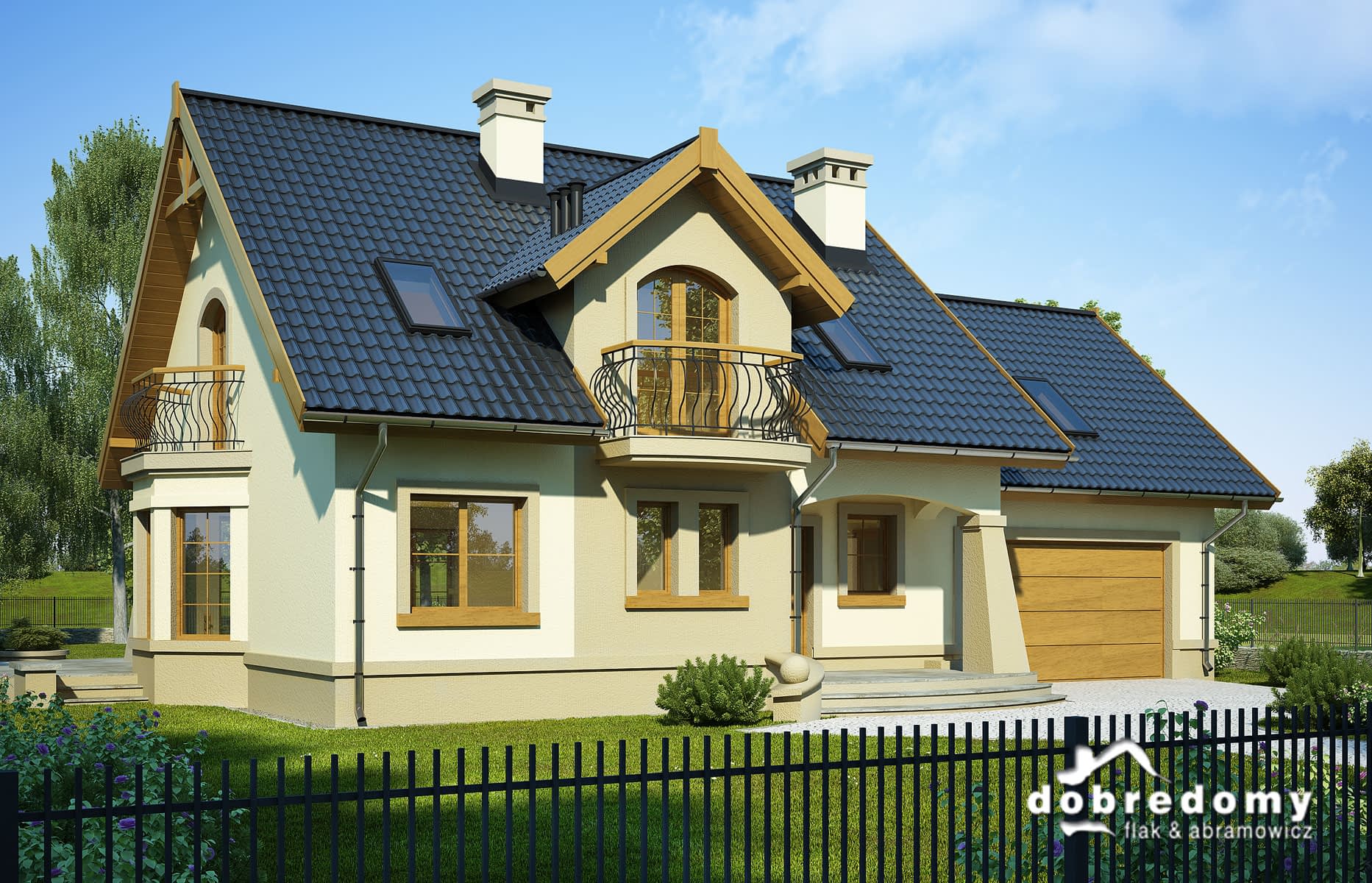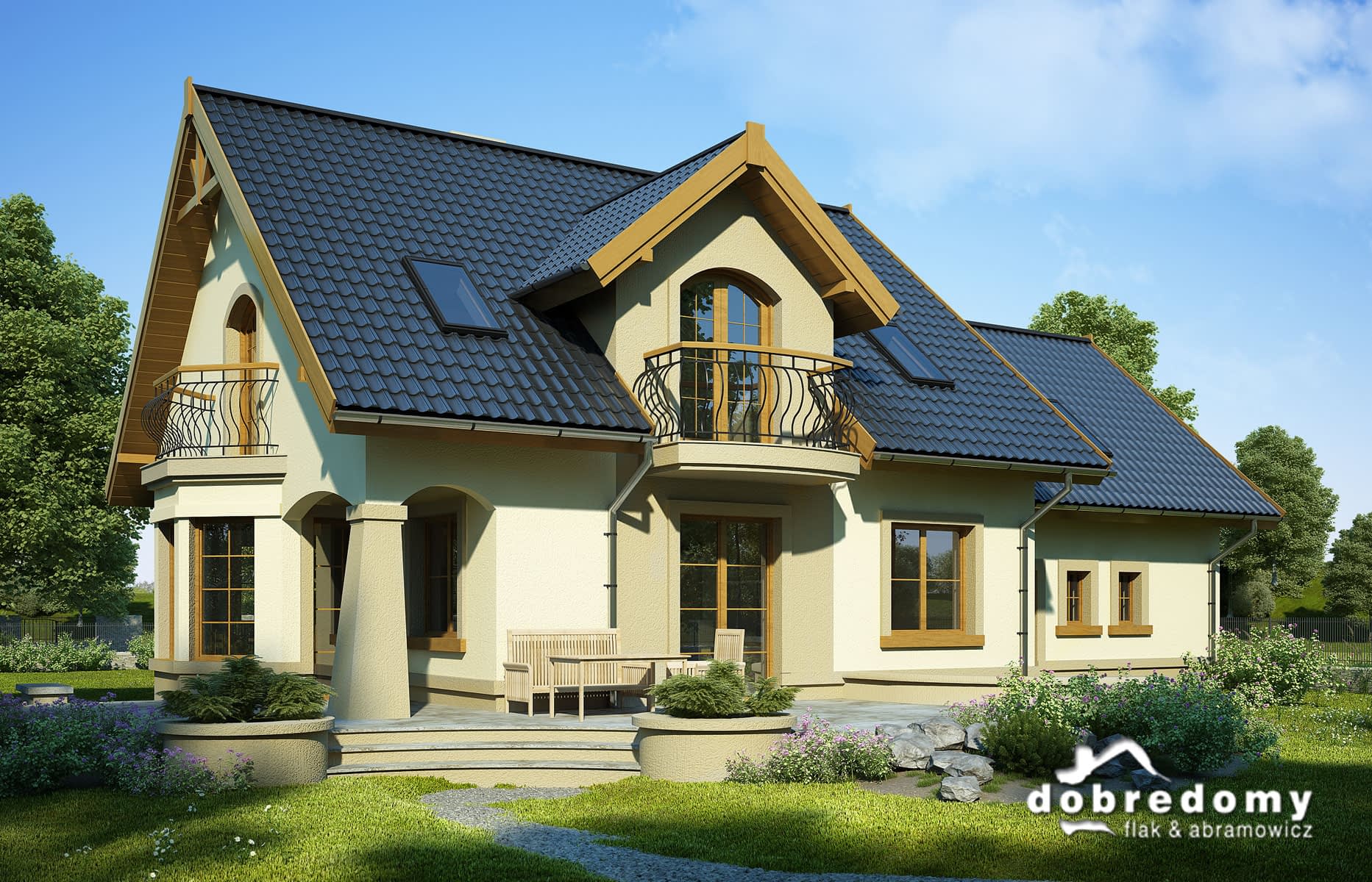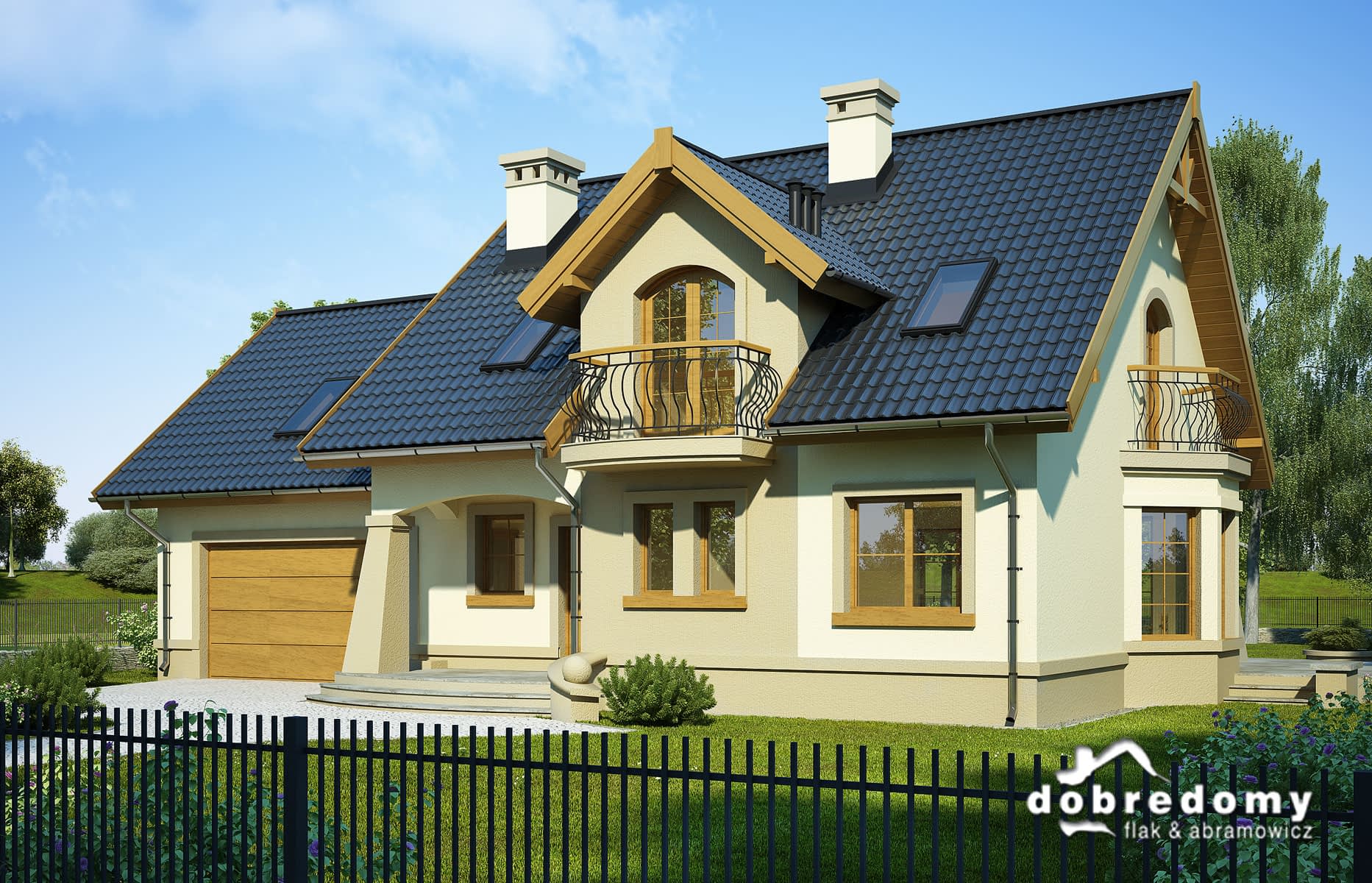 Elewacje pokryte tynkiem strukturalnym w systemie ociepleń Termo Organika. W projekcie zastosowano okna dachowe marki FAKRO. Pokrycie dachu - dachówka ceramiczna lub cementowa CREATON.