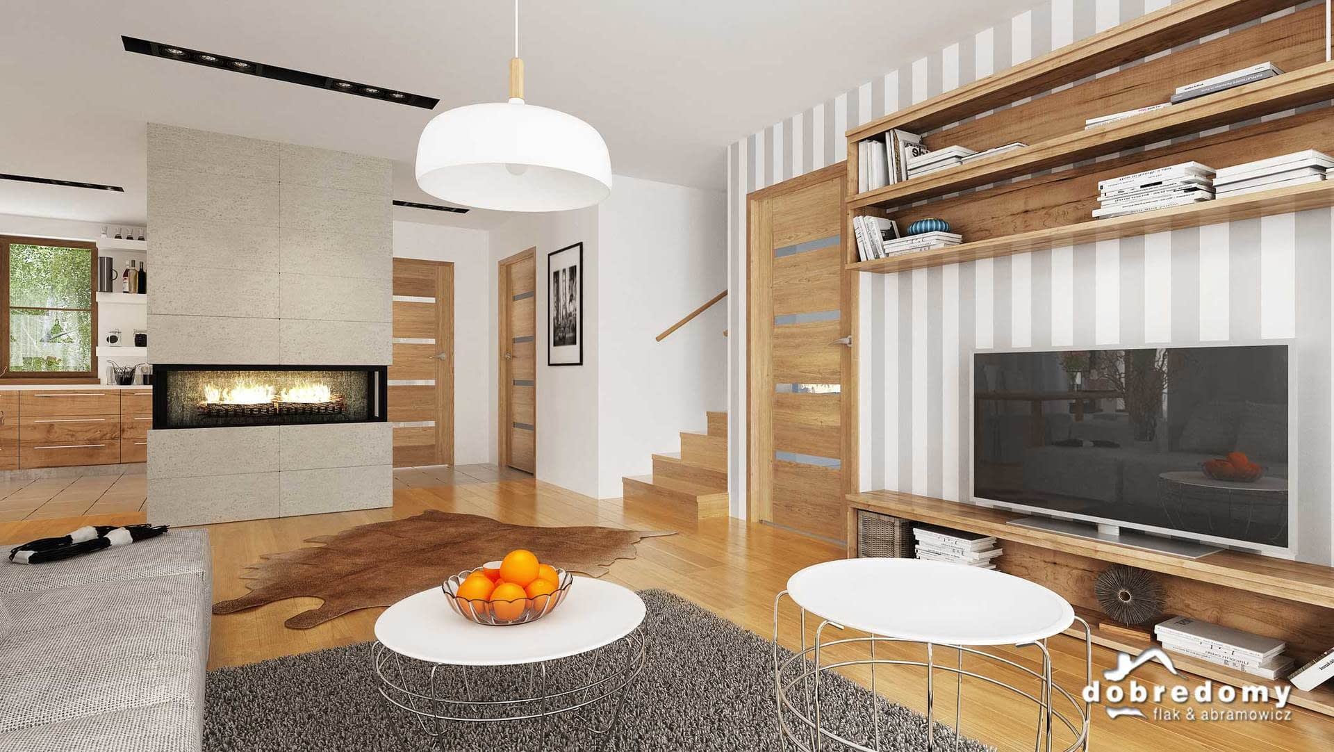 Elewacje pokryte tynkiem strukturalnym w systemie ociepleń Termo Organika. W projekcie zastosowano okna dachowe marki FAKRO. Pokrycie dachu - dachówka ceramiczna lub cementowa CREATON.