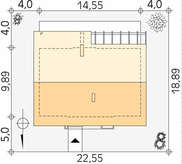 - Minimalne wymiary działki18.89 x 22.55m
