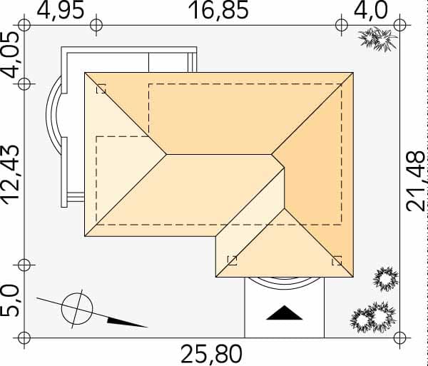- Minimalne wymiary działki21.48 x 25.8m
