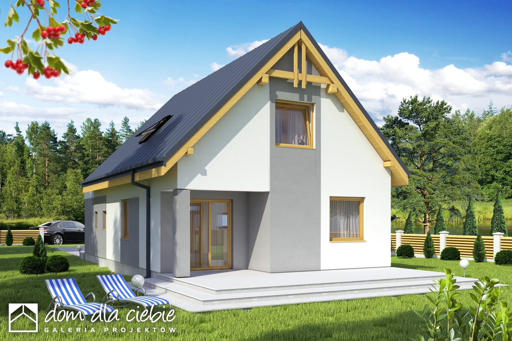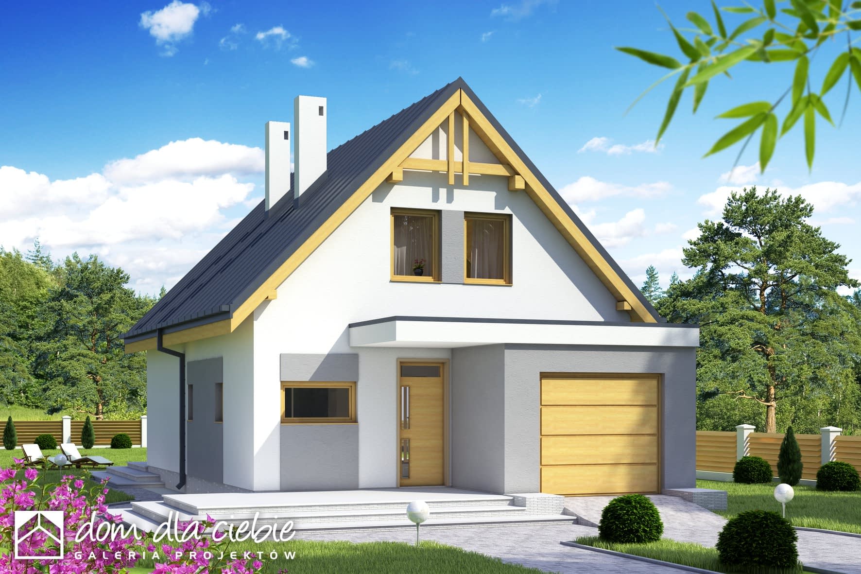 Popularny projekt z naszej oferty w nowej szacie. Dom jednorodzinny, niepodpiwniczony, dla 4-osobowej rodziny, nadający się na wąską działkę. Nieskomplikowana bryła i proste rozwiązania konstrukcyjne obniżą koszty realizacji. Salon z jadalnią posiada wyjście na częściowo zadaszony taras. Na parterze znalazły się również: otwarta kuchnia, wygodne pom. gospodarcze z piecem CO, spiżarnia, łazienka oraz garaż. Poddasze składa się z 3 sypialni (w tym jedna z garderobą) oraz łazienki. Przy rezygnacji z okna w łazience na parterze szerokość działki można zredukować do 14,9m ..Sprawdź inne projekty domów - Zapraszamy !