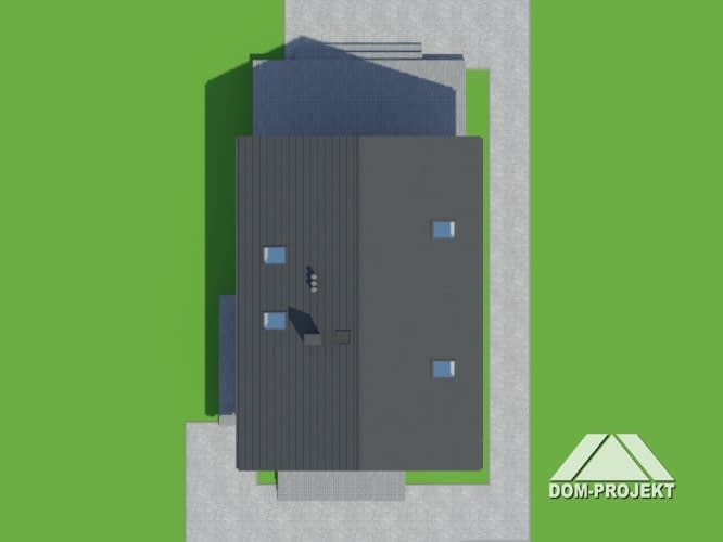 Dom na wąską działkę. Duży salon z aneksem kuchennym i wyjściem na taras. Pokój, łazienka, korytarz, kotłownia i wiatrołap. Na poddaszu trzy pokoje, łazienka, komunikacja i balkon. Zwarta bryła budynki i dach dwuspadowy sprzyjają szybkiej i taniej budowie i niskim kosztom eksploatacji.Rzuty