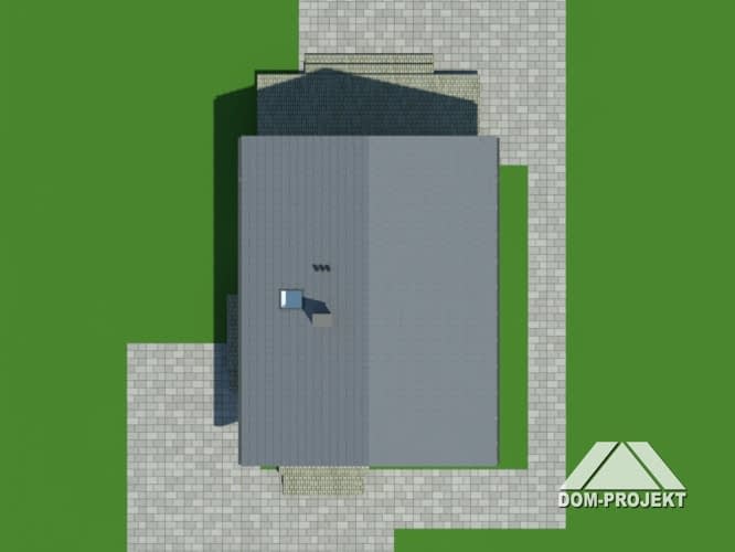 Mały dom jednorodzinny z poddaszem użytkowym. Na parterze salon z aneksem kuchennym i wyjściem na taras, pokój, łazienka, kotłownia, wiatrołap i schody na poddasze. Na poddaszu trzy pokoje, łazienka i komunikacja. Dwa pokoje poddasza mają balkon. Zwarta bryła budynku i dach dwuspadowy sprzyjają szybkiej i taniej budowie i niskim kosztom eksploatacji.Rzuty