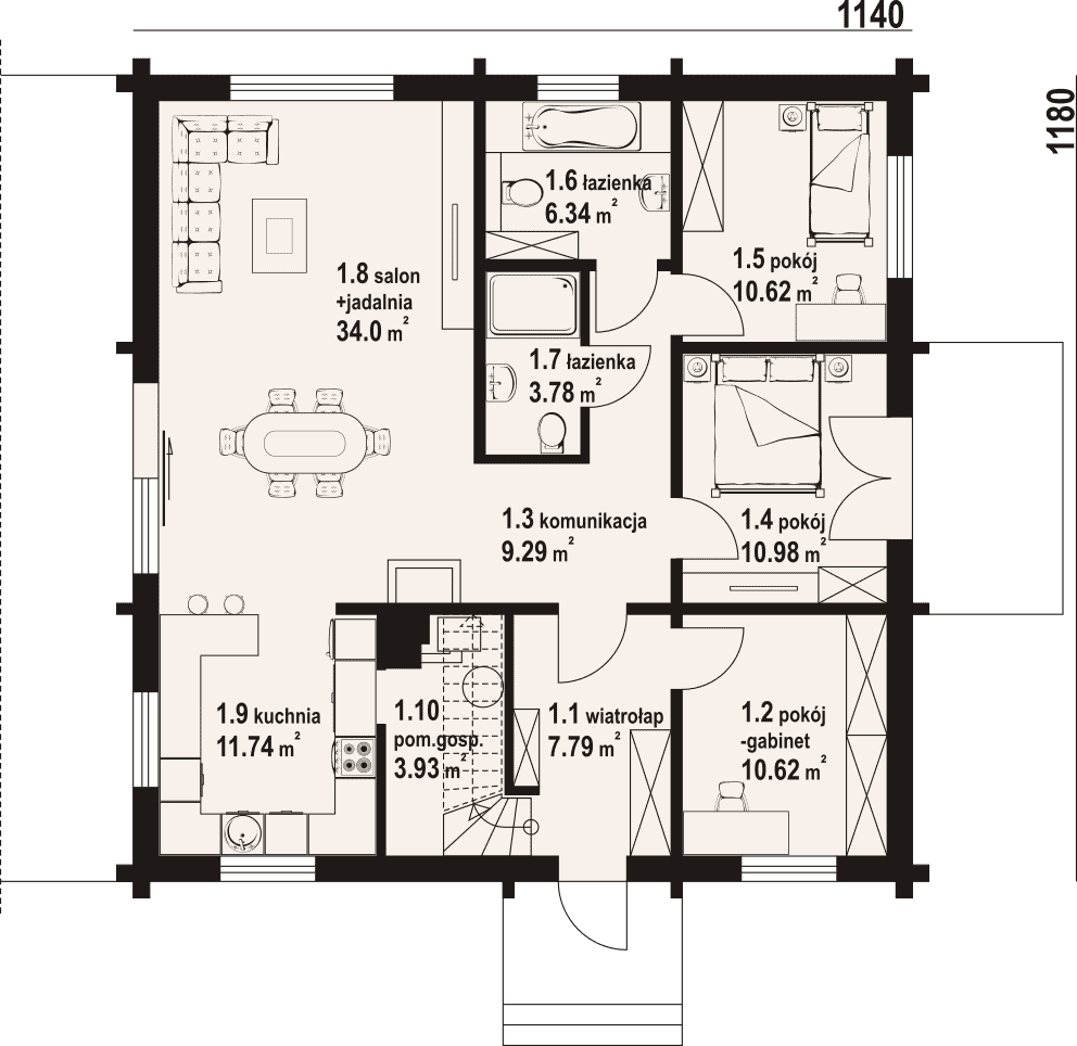 - 1.8 - salon, jadalnia34 m²