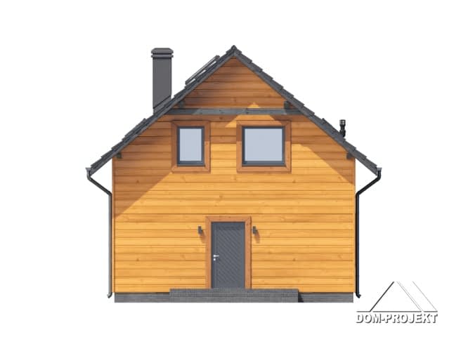 Dom w konstrukcji szkieletu drewnianego. Na parterze salon z aneksem kuchennym, wyjściem na taras i schodami na poddasze. Pokój do pracy, komunikacja, wiatrołap, wc z piecem gazowym. Na poddaszu trzy pokoje, łazienka, komunikacja, garderoba. Zwarta bryła budynku oraz dach dwuspadowy sprzyjają szybkiej i taniej budowie oraz niskim kosztom eksploatacji.Rzuty