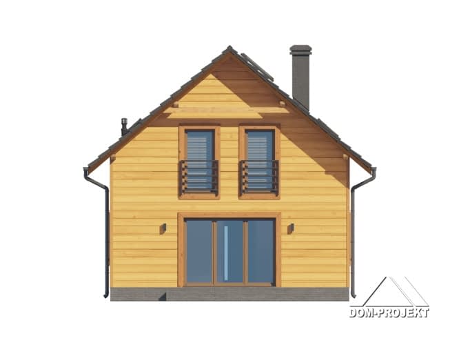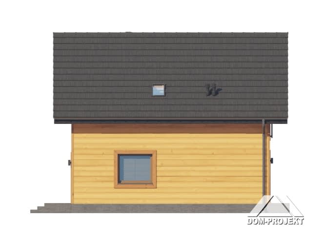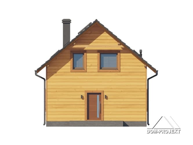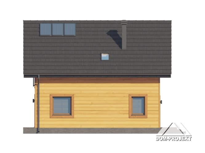 Dom w konstrukcji szkieletu drewnianego. Na parterze salon z aneksem kuchennym, wyjściem na taras i schodami na poddasze. Pokój do pracy, wc, komunikacja, wiatrołap. Na poddaszu trzy pokoje, łazienka, komunikacja, garderoba. Zwarta bryła budynku oraz dach dwuspadowy sprzyjają szybkiej i taniej budowie oraz niskim kosztom eksploatacji.Rzuty