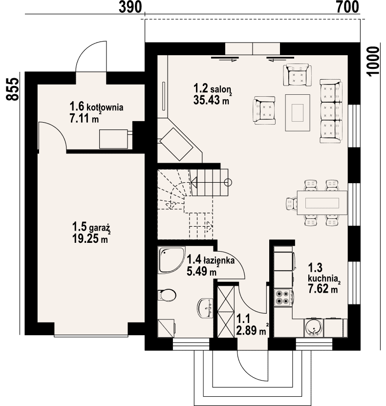 - 1.5 - garaż19.25 m²