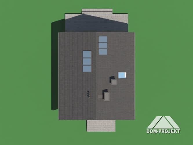 Dom w konstrukcji szkieletu drewnianego. Na parterze salon z kuchnią, wyjściem na taras i schodami na poddasze. Spiżarka, wiatrołap, łazienka, kotłownia. Na poddaszu cztery pokoje, łazienka, komunikacja oraz balkon dostępny z dwóch pokoi. Zwarta bryła budynku oraz dach dwuspadowy sprzyjają szybkiej i taniej budowie oraz niskim kosztom eksploatacji.Rzuty