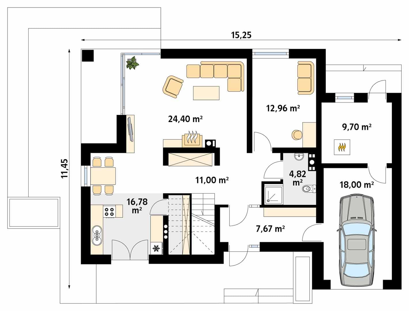 - Szerokość domu15.25 m