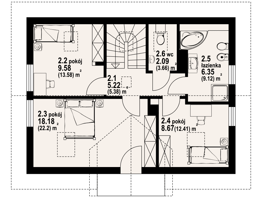 - KondygnacjeParterowy, z poddaszem