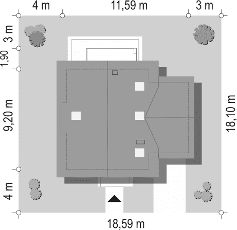 - Minimalne wymiary działki18.1 x 18.59m