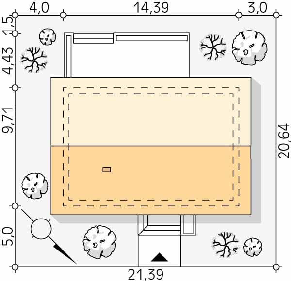 - Szerokość domu14.39 m