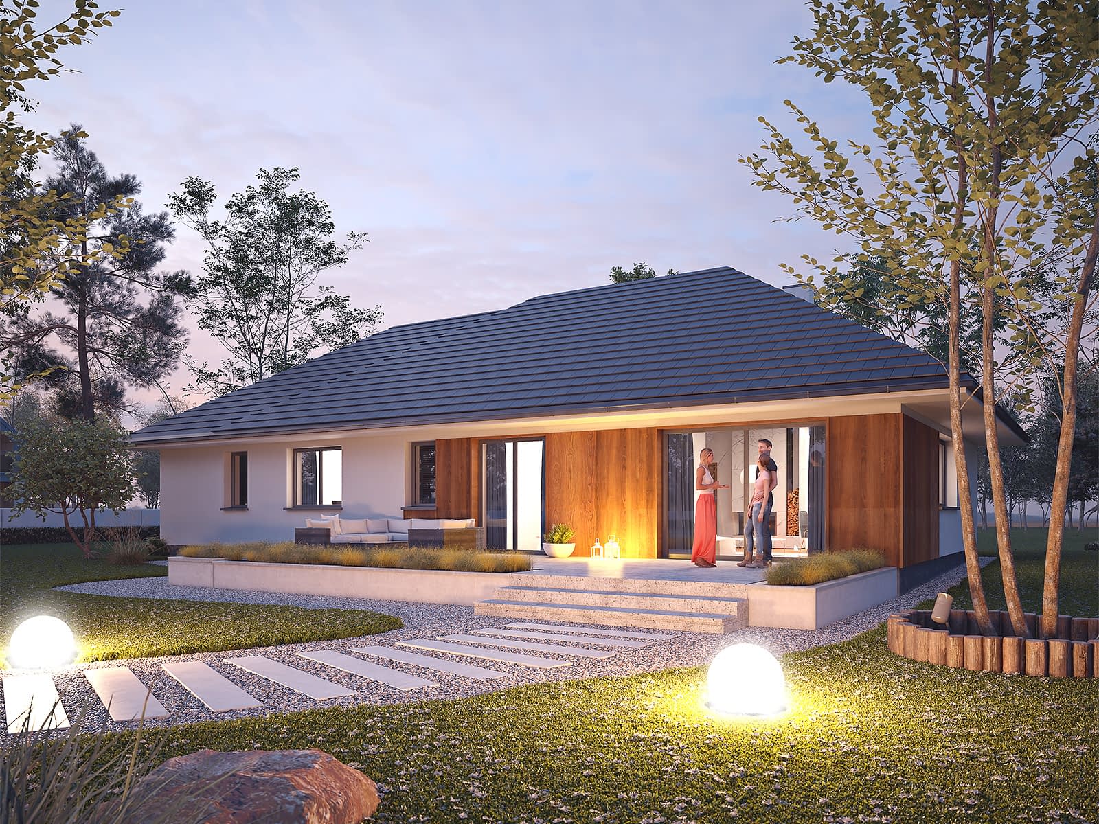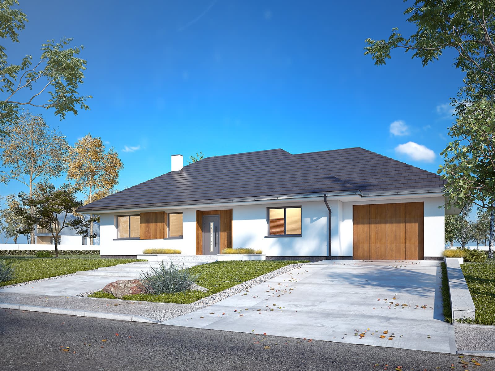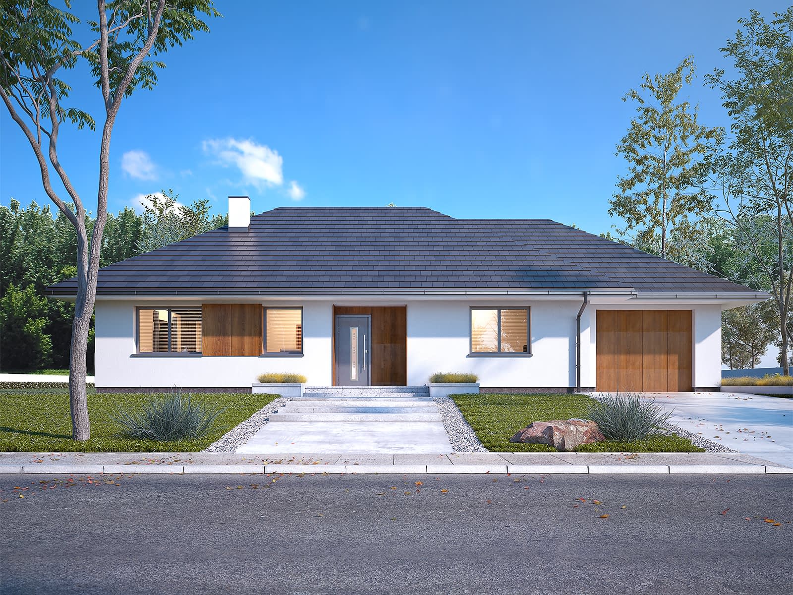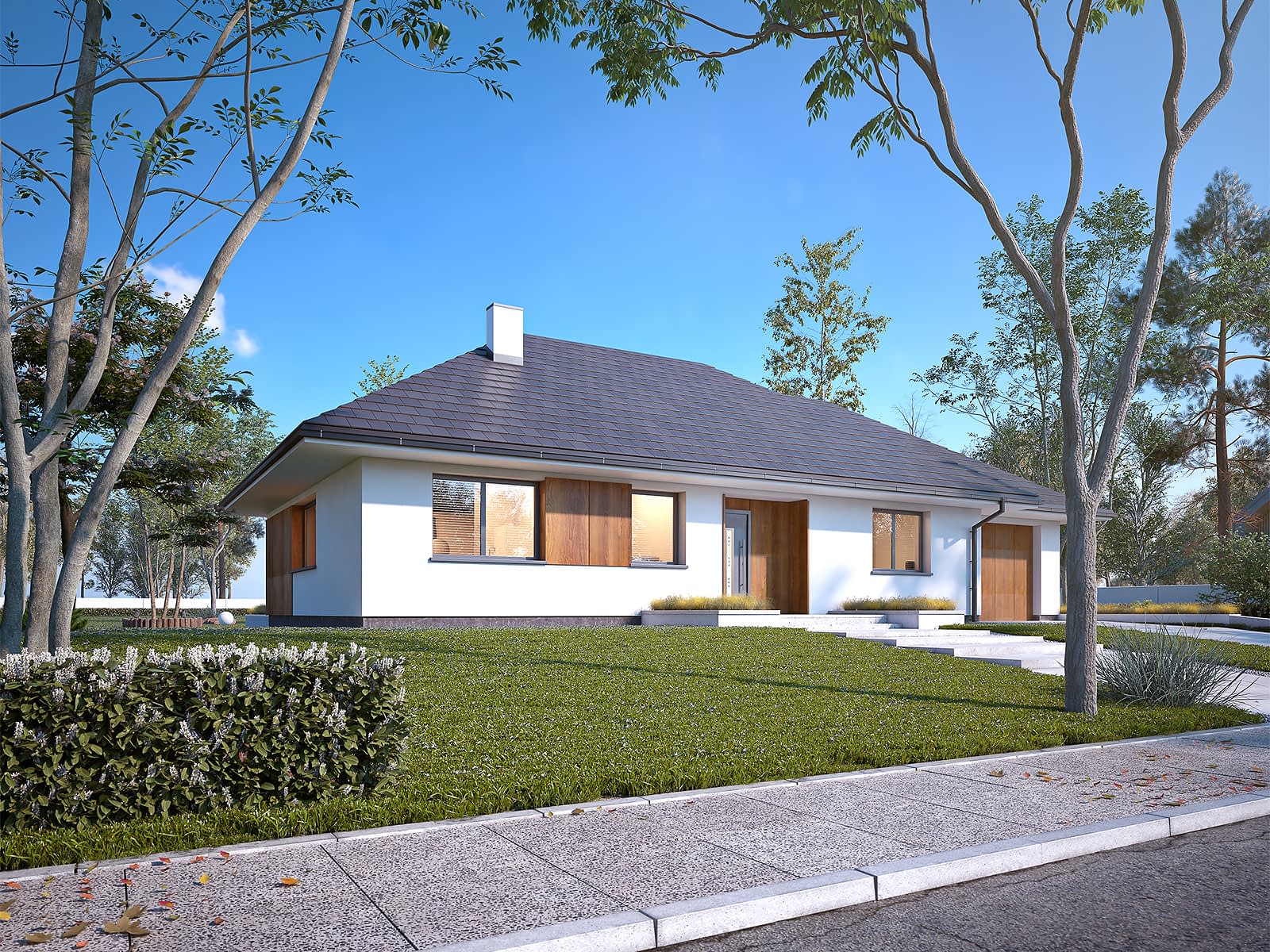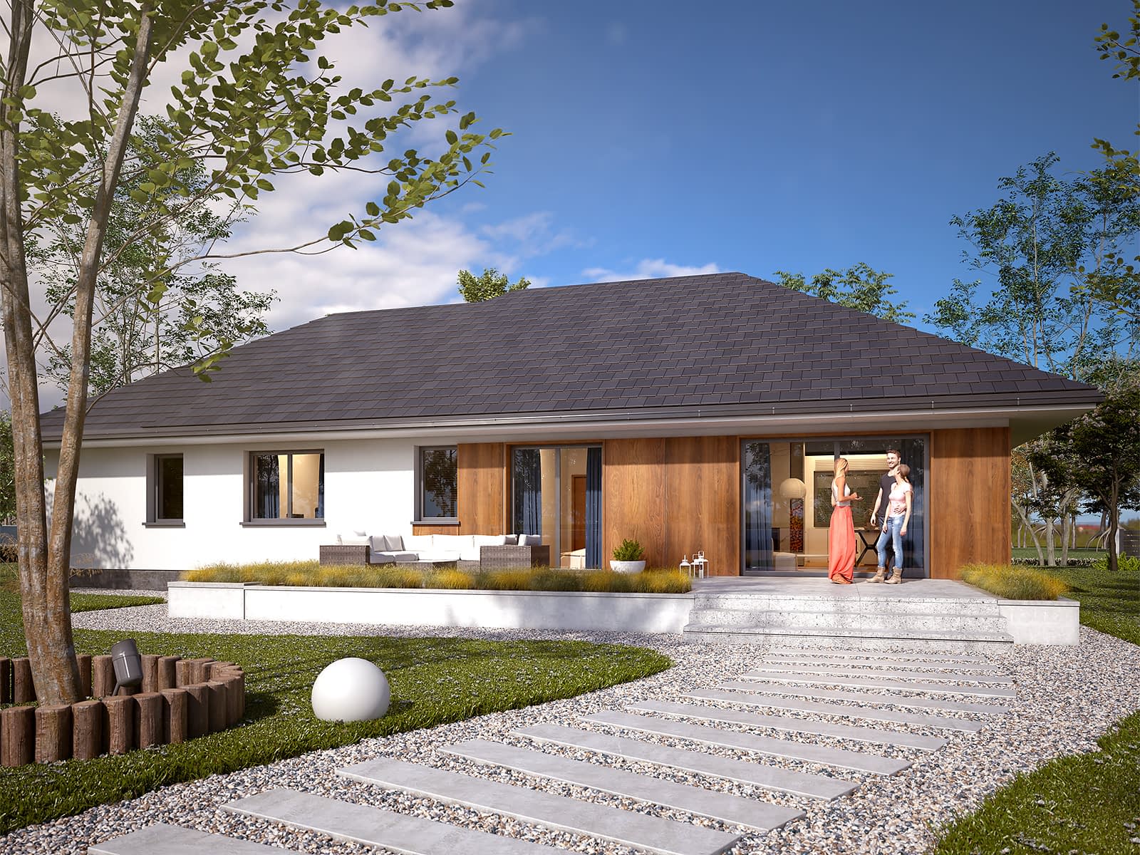Gwiazdka to parterówka o powierzchni użytkowej 114 m2. Projekt posiada prostą bryłę przykrytą czterospadowym dachem. Część dzienną tworzy salon, jadalnia i kuchnia. W części prywatnej mieszkańcy do dyspozycji mają trzy funkcjonalne sypialnie oraz ogólnodostępną łazienkę. Projekt posiada jednostanowiskowy garaż.Konstrukcja