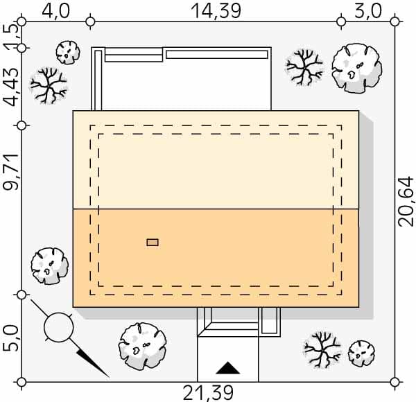 - Minimalne wymiary działki20.64 x 21.39m