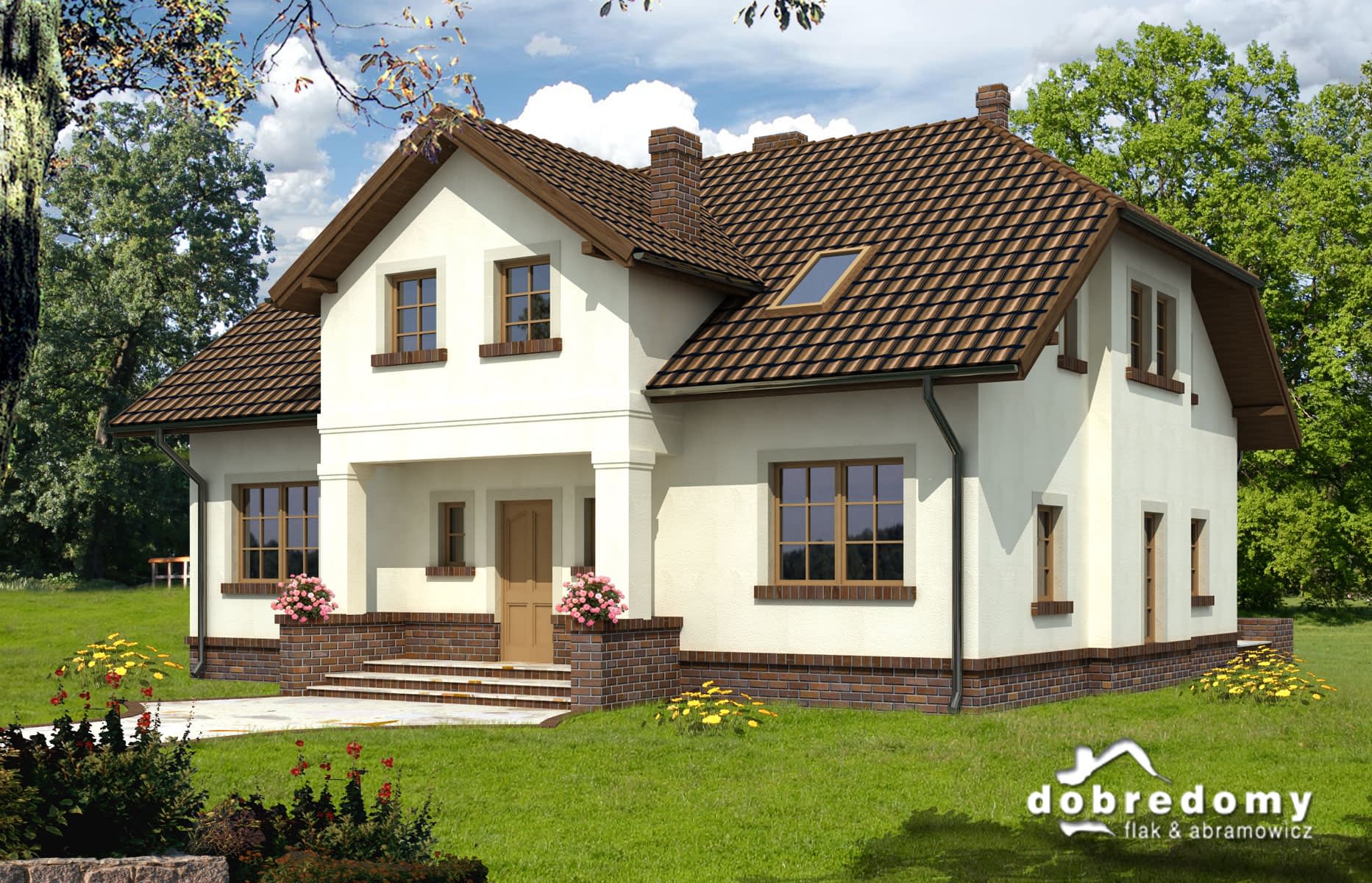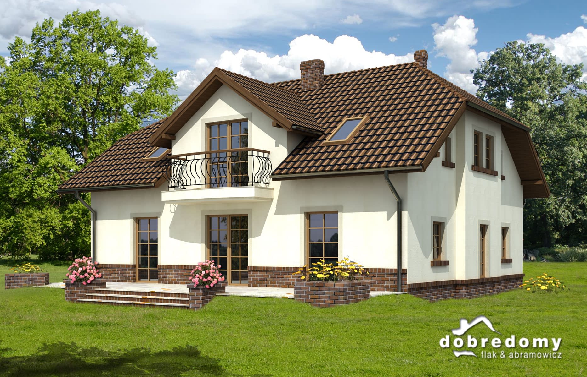 Dom z użytkowym poddaszem, niepodpiwniczony, przeznaczony dla 5-6 osobowej rodziny. Na parterze znajduje się salon z kominkiem, kuchnia, jadalnia, pokój, gabinet, łazienka i wc. Część gospodarcza obejmuje spiżarnię i pom. gospodarcze. Z części dziennej jest wyjście na obszerny taras. Na poddaszu znajdują się trzy sypialnie z ogólnodostępną łazienką oraz czwarta, z własną łazienką i garderobą.