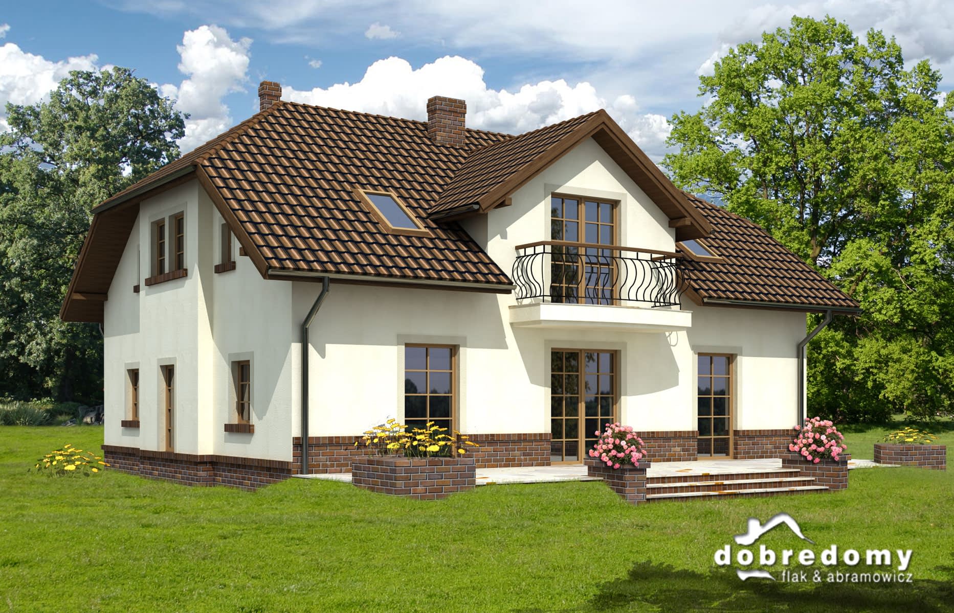 Elewacje pokryte tynkiem strukturalnym w systemie ociepleń Termo Organika. W projekcie zastosowano okna dachowe marki FAKRO. Pokrycie dachu - dachówka ceramiczna lub cementowa CREATON.