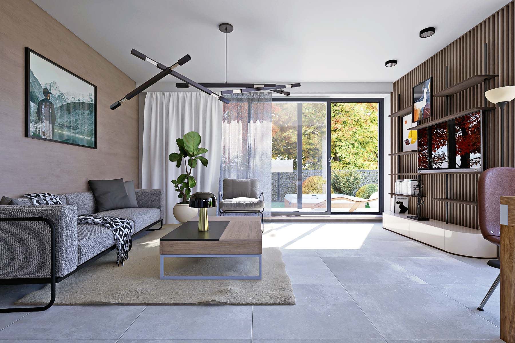 elewacje: tynk strukturalny, okładzina drewnopodobna