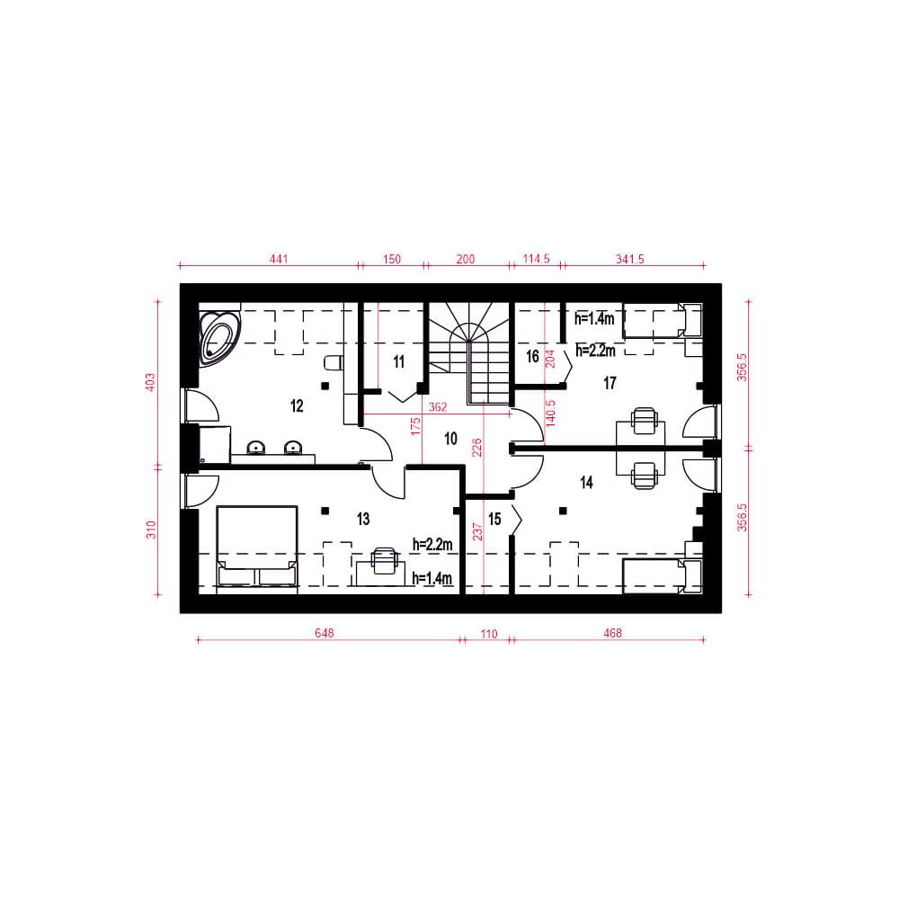 - Szerokość domu13.5 m