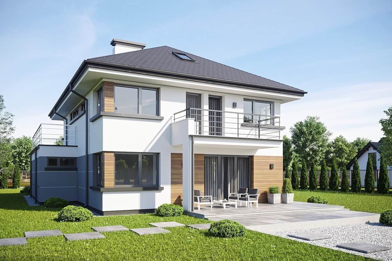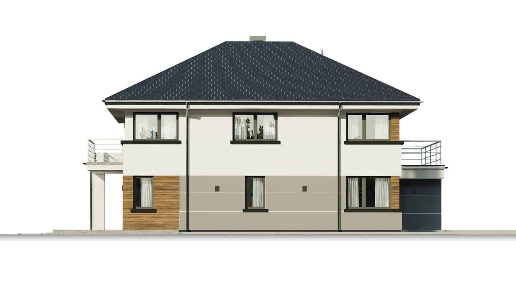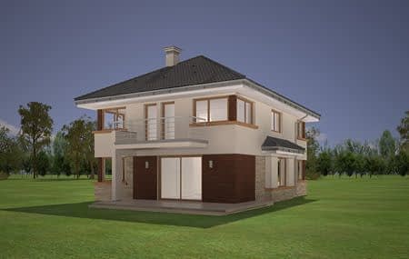 Projekt domu Helios to uroczy piętrowy domek dla cztero-pięcioosobowej rodziny. Jest to propozycja dla Inwestorów lubiących domy w nowoczesnej architekturze, którzy nie rezygnują z funkcjonalności i komfortu swojego domu. Piętrowa bryła budynku została przekryta czterospadowym dachem, a wbudowany częściowo garaż zwieńczono dachem płaskim. Dobrze dobrane detale architektoniczne, ciekawie rozmieszczone okna, drewniane i ceglane okładziny na ścianach - wszystko to tworzy atrakcyjny wygląd zewnętrzny domu. Wnętrze to otwarta część dzienna na parterze, z salonem, holem z ładnie wkomponowanymi schodami, jadalnią i kuchnią, oraz sypialnie na piętrze domu. Na parterze w domu Helios zaprojektowano dodatkowy pokój - gabinet lub sypialnię gościnną, oraz garaż z kotłownią. Na piętrze znajduje się apartament rodziców z własną łazienką i garderobą, sypialnie dziecięce z łazienką, oraz dodatkowy pokój. Pracownia posiada wersję odbicia lustrzanego projektu domu Helios. Zapraszamy do zapoznania się z pełną ofertą pracowni MG Projekt: projekt domu Helios wariant C, projekt domu Helios wariant D, projekt domu Helios wariant E, projekt domu Helios wariant J, projekt domu Helios wariant F, projekt domu Helios wariant I, projekt domu Helios wariant B, projekt domu Helios wariant H.
