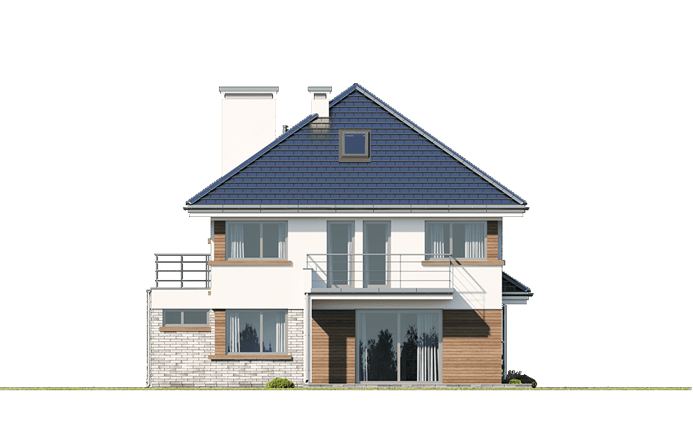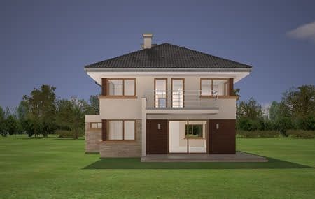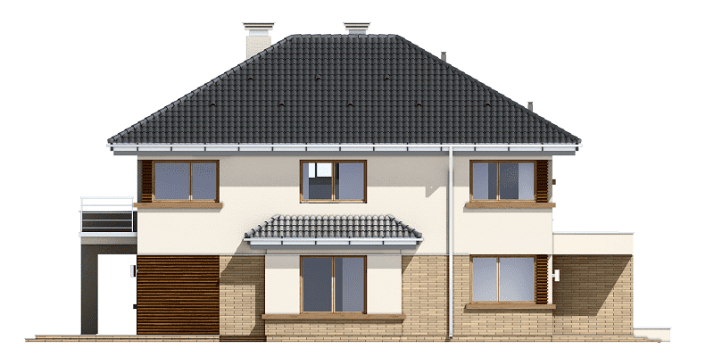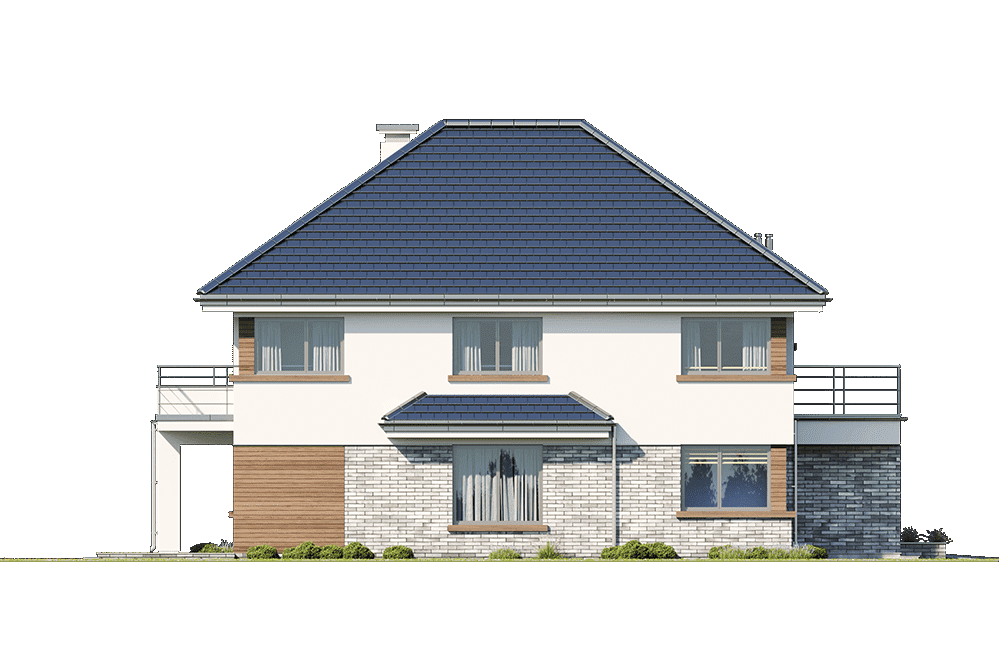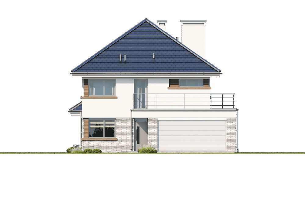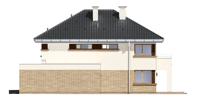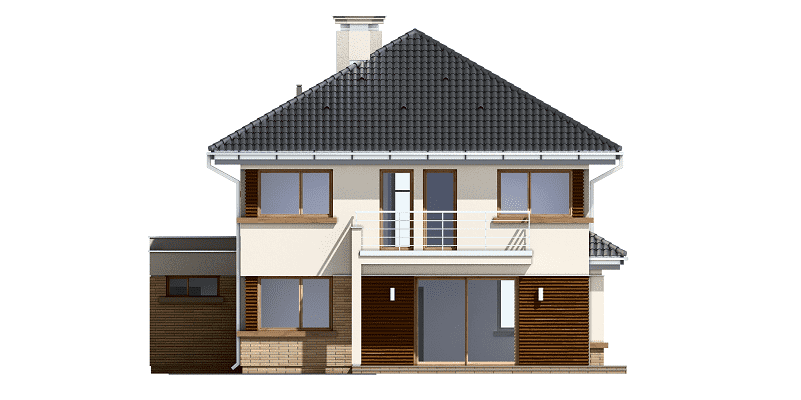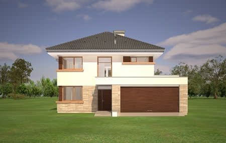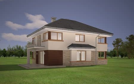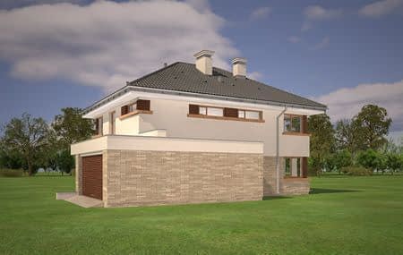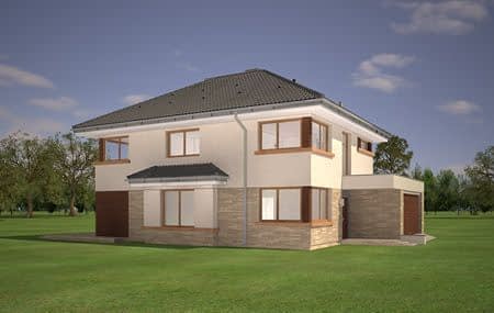 Projekt domu Helios to uroczy piętrowy domek dla cztero-pięcioosobowej rodziny. Jest to propozycja dla Inwestorów lubiących domy w nowoczesnej architekturze, którzy nie rezygnują z funkcjonalności i komfortu swojego domu. Piętrowa bryła budynku została przekryta czterospadowym dachem, a wbudowany częściowo garaż zwieńczono dachem płaskim. Dobrze dobrane detale architektoniczne, ciekawie rozmieszczone okna, drewniane i ceglane okładziny na ścianach - wszystko to tworzy atrakcyjny wygląd zewnętrzny domu. Wnętrze to otwarta część dzienna na parterze, z salonem, holem z ładnie wkomponowanymi schodami, jadalnią i kuchnią, oraz sypialnie na piętrze domu. Na parterze w domu Helios zaprojektowano dodatkowy pokój - gabinet lub sypialnię gościnną, oraz garaż z kotłownią. Na piętrze znajduje się apartament rodziców z własną łazienką i garderobą, sypialnie dziecięce z łazienką, oraz dodatkowy pokój. Pracownia posiada wersję odbicia lustrzanego projektu domu Helios. Zapraszamy do zapoznania się z pełną ofertą pracowni MG Projekt: projekt domu Helios wariant C, projekt domu Helios wariant D, projekt domu Helios wariant E, projekt domu Helios wariant J, projekt domu Helios wariant F, projekt domu Helios wariant I, projekt domu Helios wariant B, projekt domu Helios wariant H.