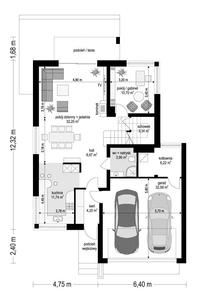 Wariant projektu ze zmienionym układem pomieszczeń, zmienioną stolarka okienna i drzwiową, doprojektowanymi schodami na strych, zmienionym kątem nachylenia dachu na 35 stopni, oraz zmienionym stropem nad piętrem na płytę żelbetową.Zapraszamy do zapoznania się z pełną ofertą pracowni MG Projekt: projekt domu Helios wariant C, projekt domu Helios wariant D, projekt domu Helios wariant E, projekt domu Helios wariant J, projekt domu Helios, projekt domu Helios wariant I, projekt domu Helios wariant B, projekt domu Helios wariant H.