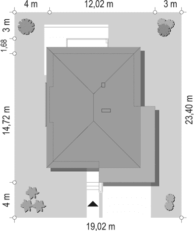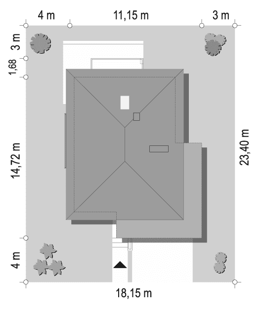 - Minimalne wymiary działki23.4 x 18.15m