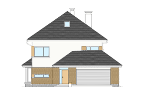 Projekt domu Helios to uroczy piętrowy domek dla cztero-pięcioosobowej rodziny. Jest to propozycja dla Inwestorów lubiących domy w nowoczesnej architekturze, którzy nie rezygnują z funkcjonalności i komfortu swojego domu. Piętrowa bryła budynku została przekryta czterospadowym dachem, a wbudowany częściowo garaż zwieńczono dachem płaskim. Dobrze dobrane detale architektoniczne, ciekawie rozmieszczone okna, drewniane i ceglane okładziny na ścianach - wszystko to tworzy atrakcyjny wygląd zewnętrzny domu. Wnętrze to otwarta część dzienna na parterze, z salonem, holem z ładnie wkomponowanymi schodami, jadalnią i kuchnią, oraz sypialnie na piętrze domu. Na parterze w domu Helios zaprojektowano dodatkowy pokój - gabinet lub sypialnię gościnną, oraz garaż z kotłownią. Na piętrze znajduje się apartament rodziców z własną łazienką i garderobą, sypialnie dziecięce z łazienką, oraz dodatkowy pokój. Pracownia posiada wersję odbicia lustrzanego projektu domu Helios. Zapraszamy do zapoznania się z pełną ofertą pracowni MG Projekt: projekt domu Helios wariant C, projekt domu Helios wariant D, projekt domu Helios wariant E, projekt domu Helios wariant J, projekt domu Helios wariant F, projekt domu Helios wariant I, projekt domu Helios wariant B, projekt domu Helios wariant H.