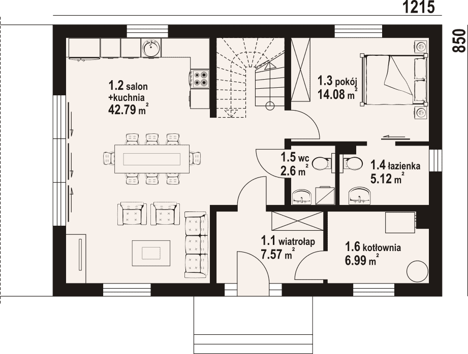 - 1.2 - kuchnia, salon42.79 m²