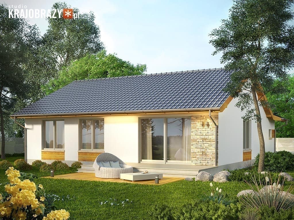 Hibiskus to niewielki domek wolnostojący kryty dachem skośnym (dwuspadowym). Garaż jest nieco wysunięty względem głównej bryły budynku, dzięki czemu strefa wejściowa jest częściowo osłonięta. Duże okna w salonie dają dobry wgląd na ogród. Budynek utrzymany jest w tradycyjnej kolorystyce, posiada tynkowane białe ściany częściowo obłożone płytkami kamiennymi i drewnem.Zaprojektowano przestronną część dzienną, w której znalazły się salon, jadalnia oraz kuchnia. Uwzględniono również 3 pokoje sypialne i łazienkę. Z wiatrołapu dostępne jest pomieszczenie gospodarcze, przez które przejść możemy do garażu. Projekt dostępny jest w wersji standard oraz odbicie lustrzane.Rzuty
